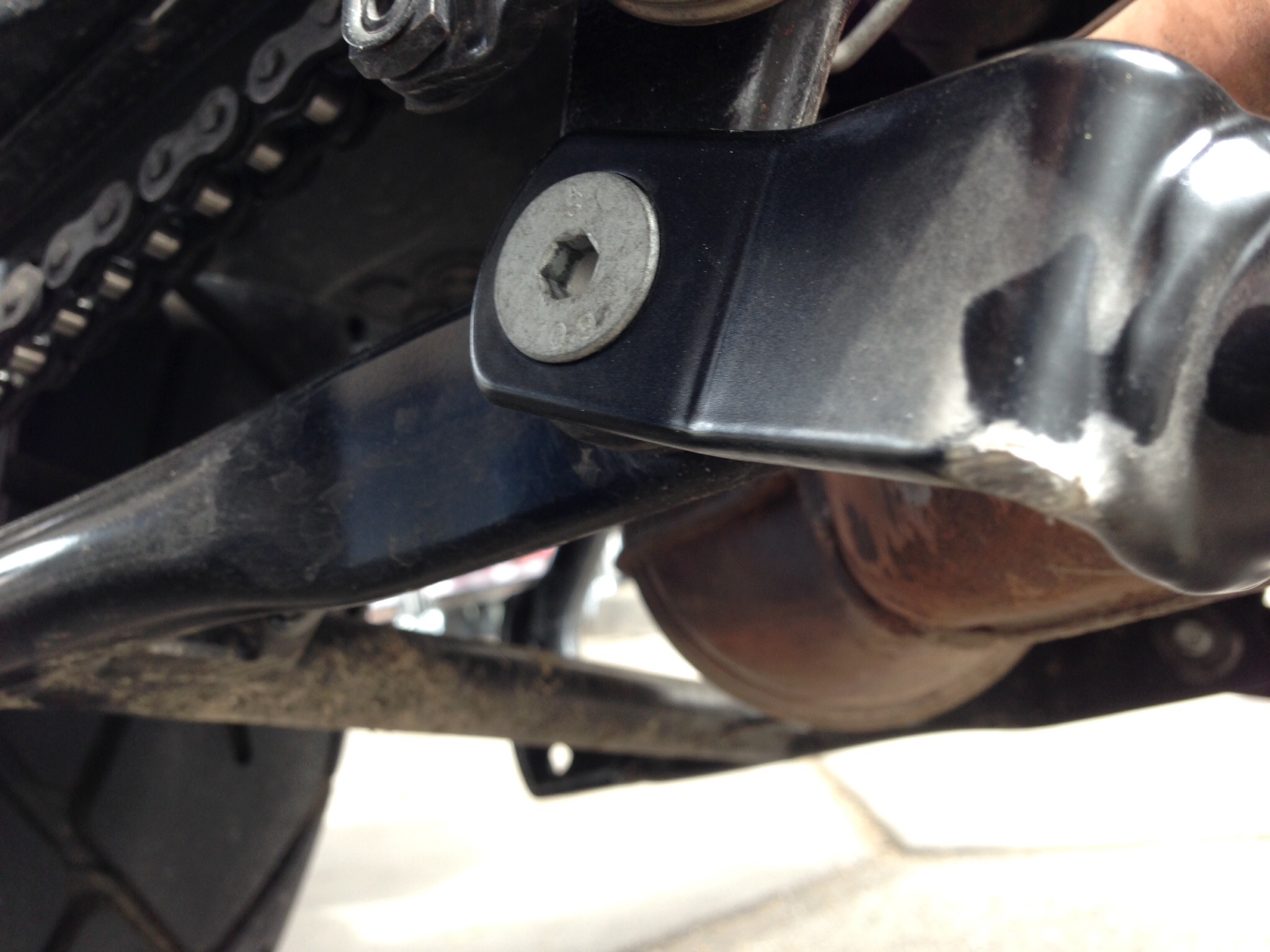 Wenn der Hauptständer nicht aufsetzt, setzt halt der Seitenständer oder dieses halbrunde Teil an der Seitenständerhalterung auf.