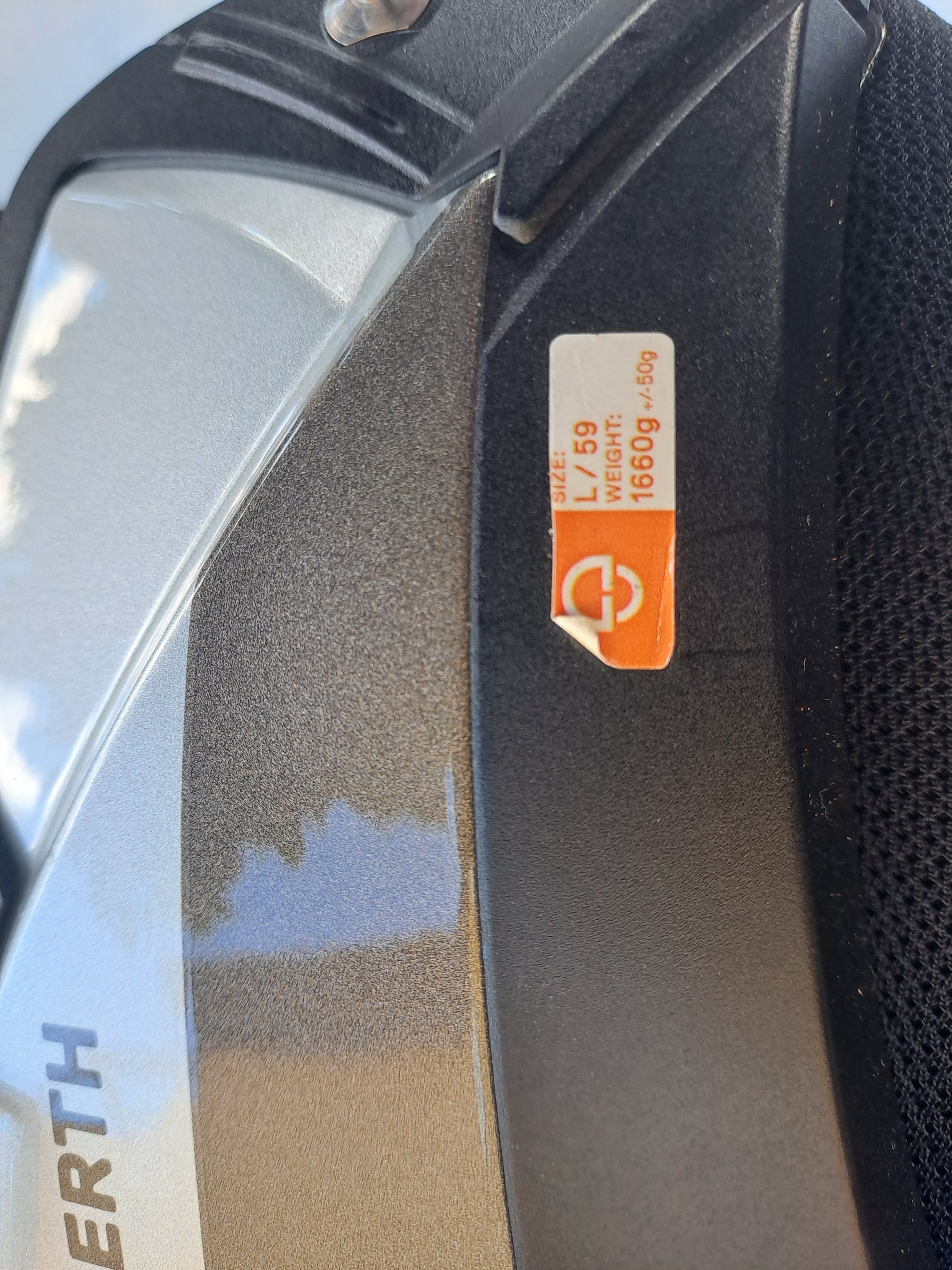 Gut bis sehr erhalten, nur mit Kopfhaarschutz getragen, Visier und Pinnlook aus diesem Jahr., mit Reflektionsaufkleber für Frankreich
