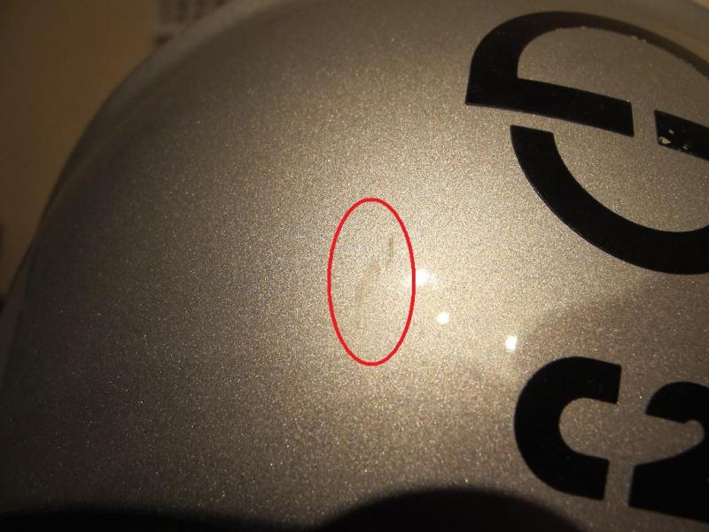 Die kleinen Kratzer sind nur oberflächlich im Bereich der Klarlackschicht - der Helm ist unfallfrei