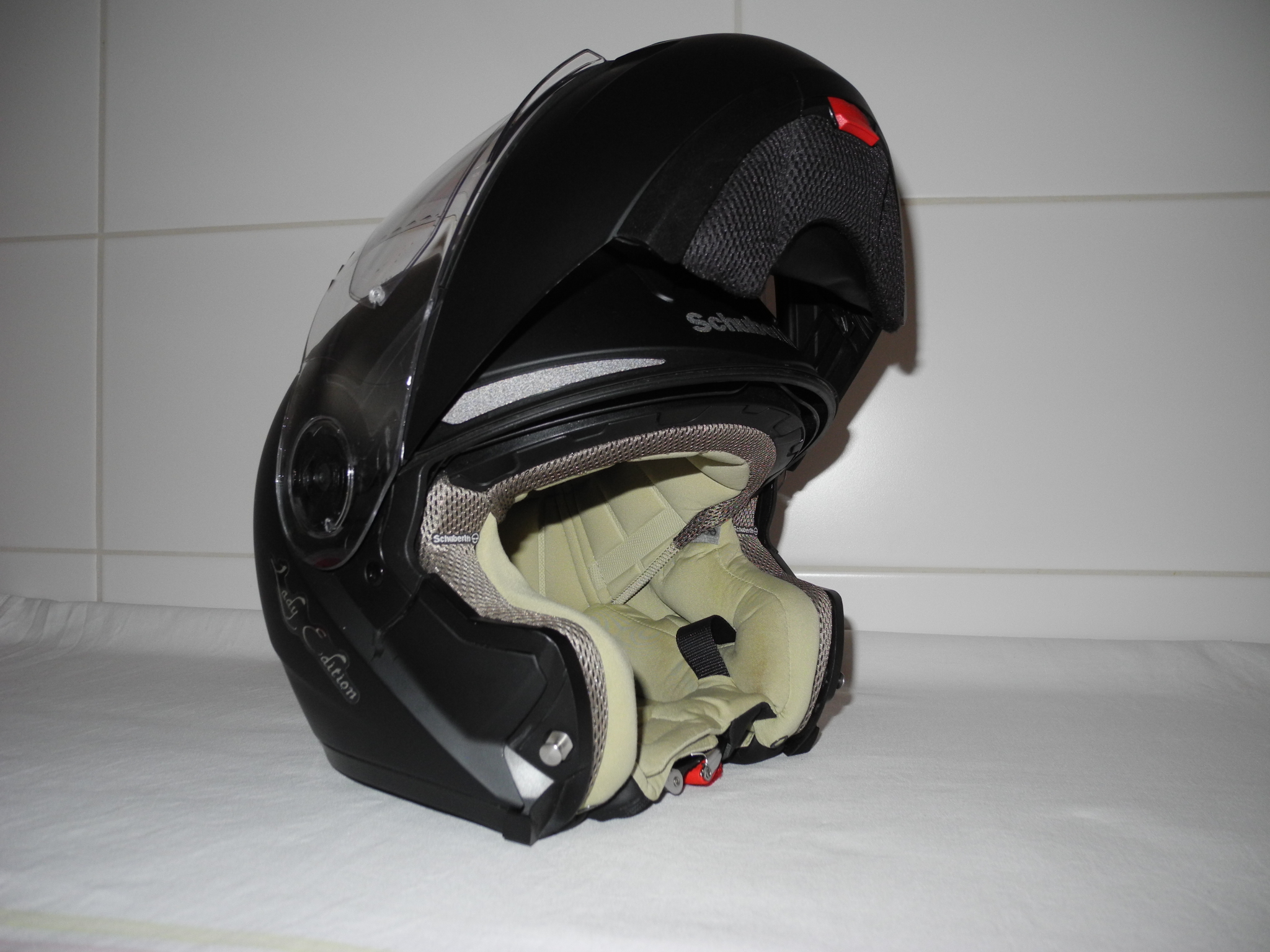 - 2013er Schuberth C3, Lady Edition (Schwarz-Matt), Größe 56/57 mit Helmsack, ohne Originalverpackung. Der Helm ist unfallfrei, Visiermechanik und Pinlock funktionieren einwandfrei.