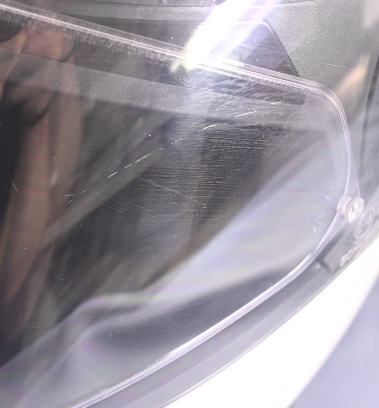 Das Visier hat seitlich einen Kratzer, der in der Durchsicht nicht sichtbar ist. Damit's fair bleibt berücksichtige ich den Preis für ein neues Visier (ca Euro 70,-) in der Preisvorstellung. So hat man entweder einen Spitzenhelm zum Spitzenpreis, oder einen Spitzenhelm mit neuem Visier ebenfalls zum Spitzenpreis.