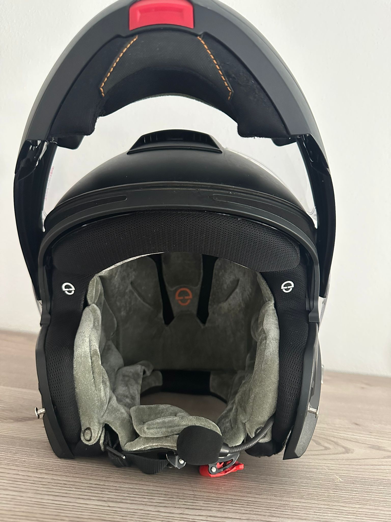 Mit Bluetooth-Kragen original von Schubert ( Cardo-System )