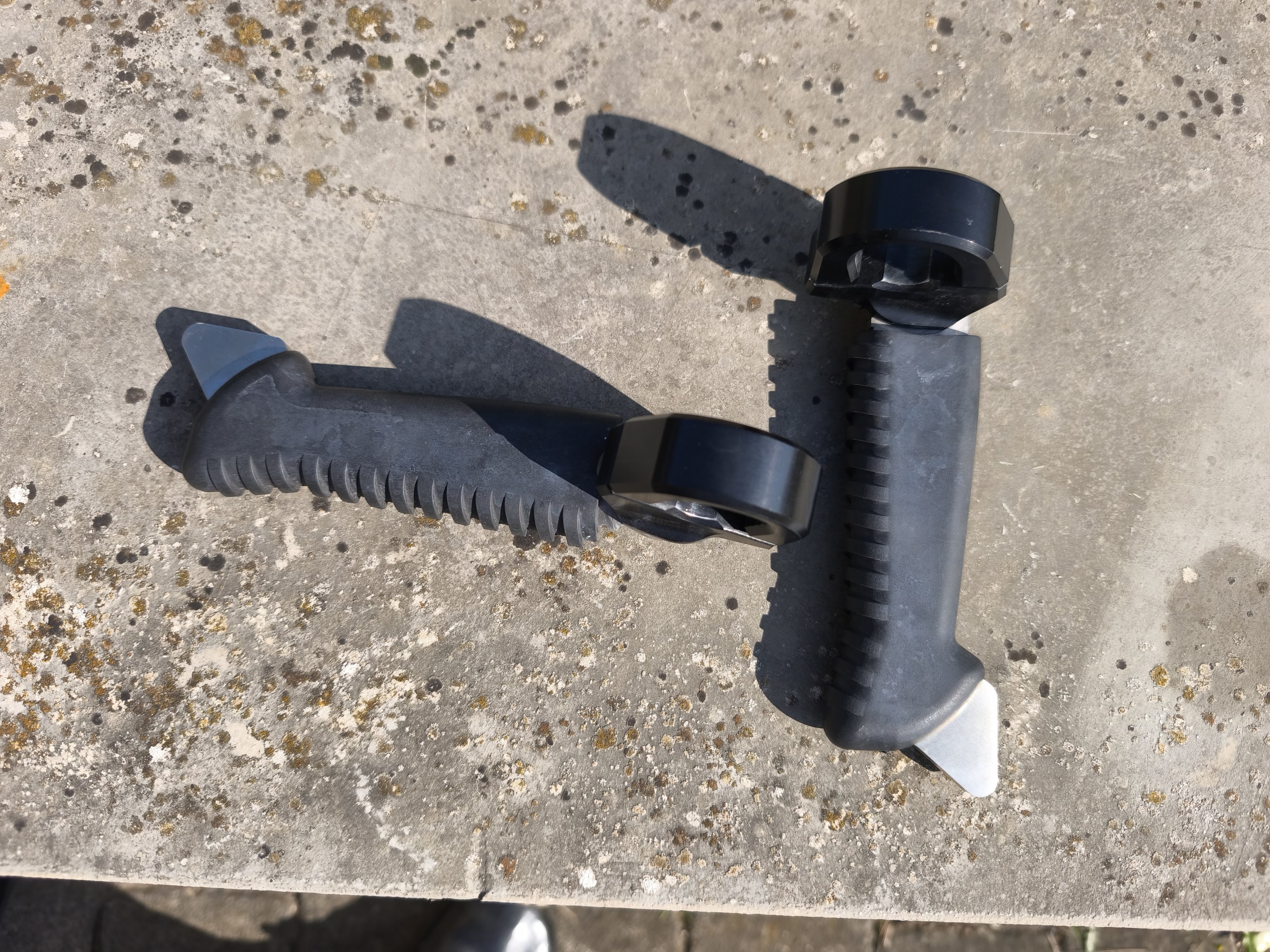 der Vorbesitzer meiner GSA hat sich von (dem Anschein nach Wunderlich) Schutzbügel Fußrasten montiert.