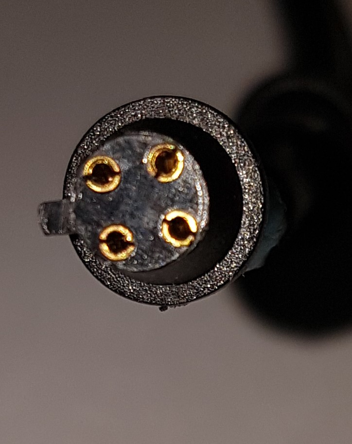 Er ist vierpolig und hat so eine "Nase" an der Seite.
