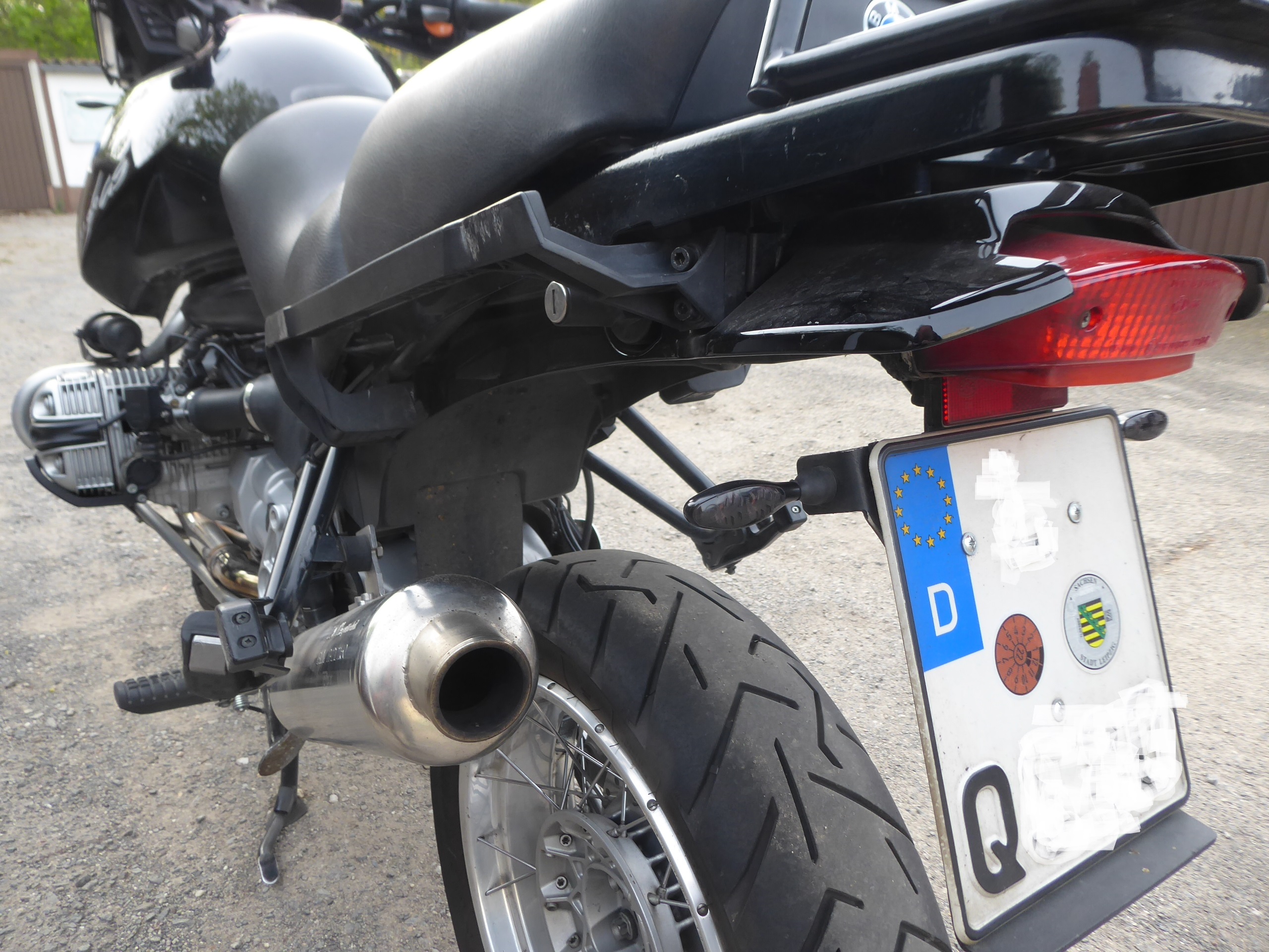 Der Kotflügel ist hinten ausgearbeitet, so das ein Rücklicht von Ducati reinpaßt. Ein originales Rücklicht von BMW paßt auch , aber dann ist zuviel Luft zwischen Kotflügel und RL.