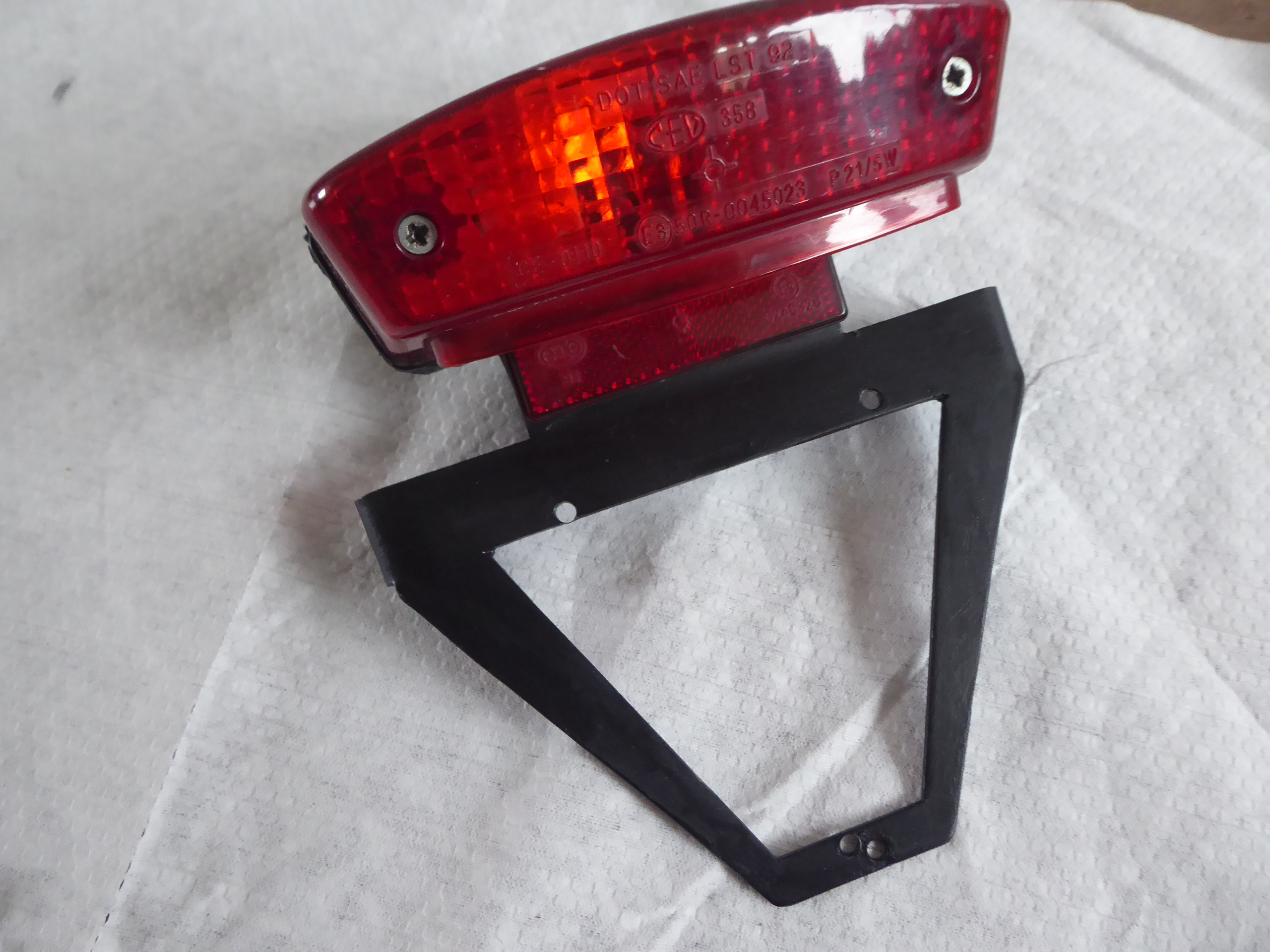 Den Kennzeichenhalter aus Edelstahl samt Rücklicht von Ducati gebe ich mit dazu.