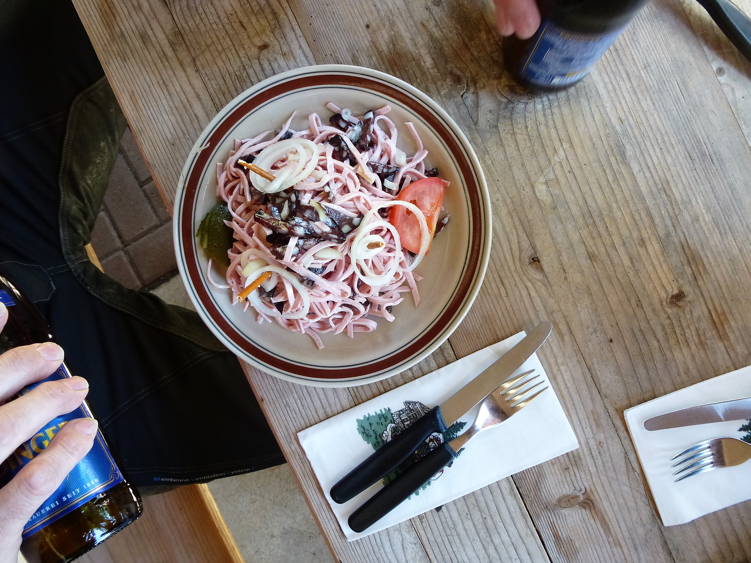 Schönes Haus mit netter Terrasse und einen Balkon mit tollem Ausblick! Saubere Toiletten, sehr nette Bedienung und einem sehr schön angerichteten und leckeren Wurstsalat!