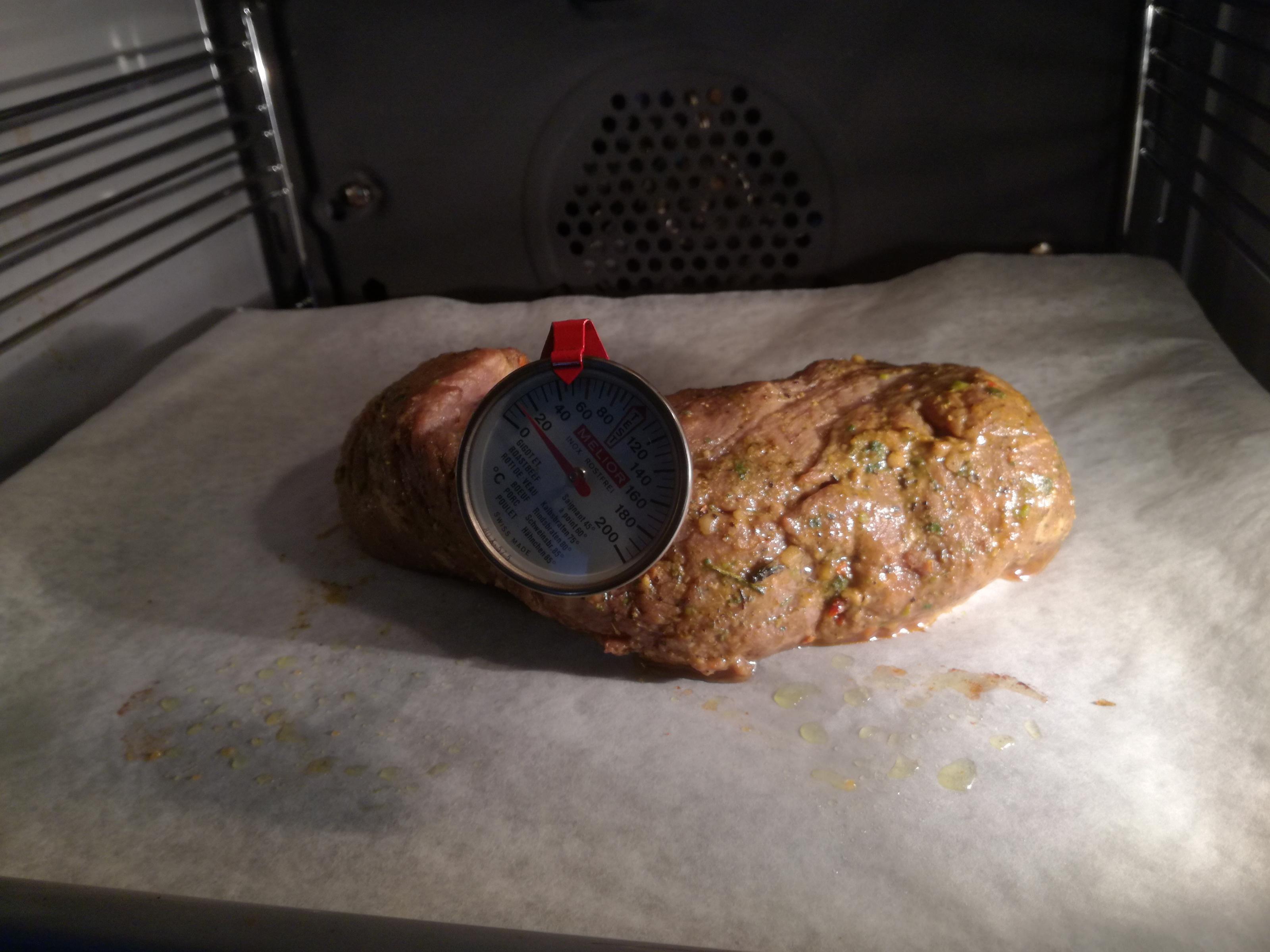 Dann 950 Gramm Black Angus 90 Minuten bei 80 Grad im Ofen,