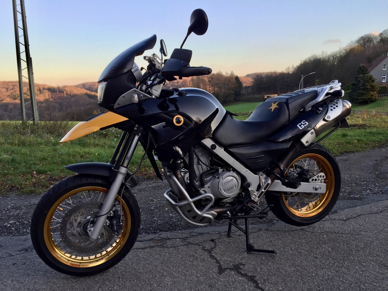 da meine Frau aus gesundheitlichen Gründen nicht mehr fahren will, biete ich hier eine BMW F 650 GS Baujahr 2004 (R13 mit Doppelzündung) mit vielen Zubehörteilen an. Die Maschine hat 83500 km Langstrecke problemlos abgespult und befindet sich in einem dem Alter entsprechendem hervorragendem Zustand. Meine Frau ist kein Heizer und hat das Motorrad immer erst warm und dann verhalten gefahren. Das Motorrad ist schwarz-gelb (gelber Schnabel nur foliert) gehalten und hat einen 17 Zoll SuperMoto Umbau mit goldenen Excel-Felgen (ideal für kleine Menschen, wenn meine Frau Grit draufsitzt beträgt die Sitzhöhe 71 cm, im ausgefederten Zustand 75 cm, SuMo-Radsatz natürlich in die Fahrzeugpapiere eingetragen) und eine Lenkererhöhung. Sie ist gerade bei Eco-Drome in Hattingen und wird frisch getüvt und durchgesehen und hat letzte Woche eine neue Gel-Batterie bekommen. Dabei gibt es (so der Plan):