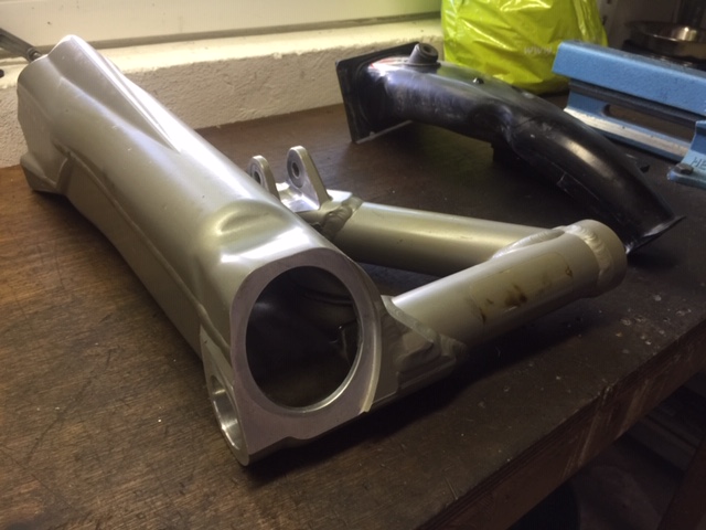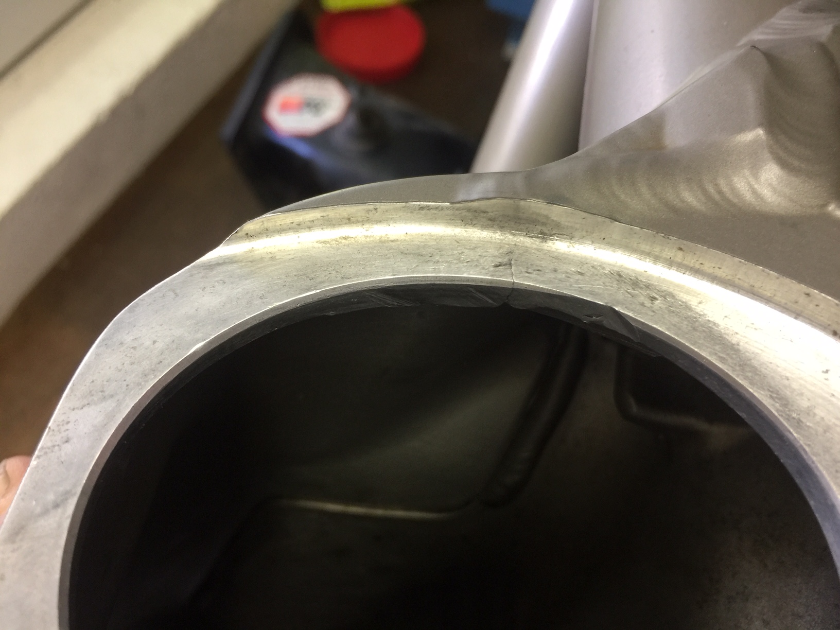 Die Alu Schwinge meiner RHP2, Bj 95 hat einen 3mm langen Haariß am Bund des Kardanwellen-Eingangs.