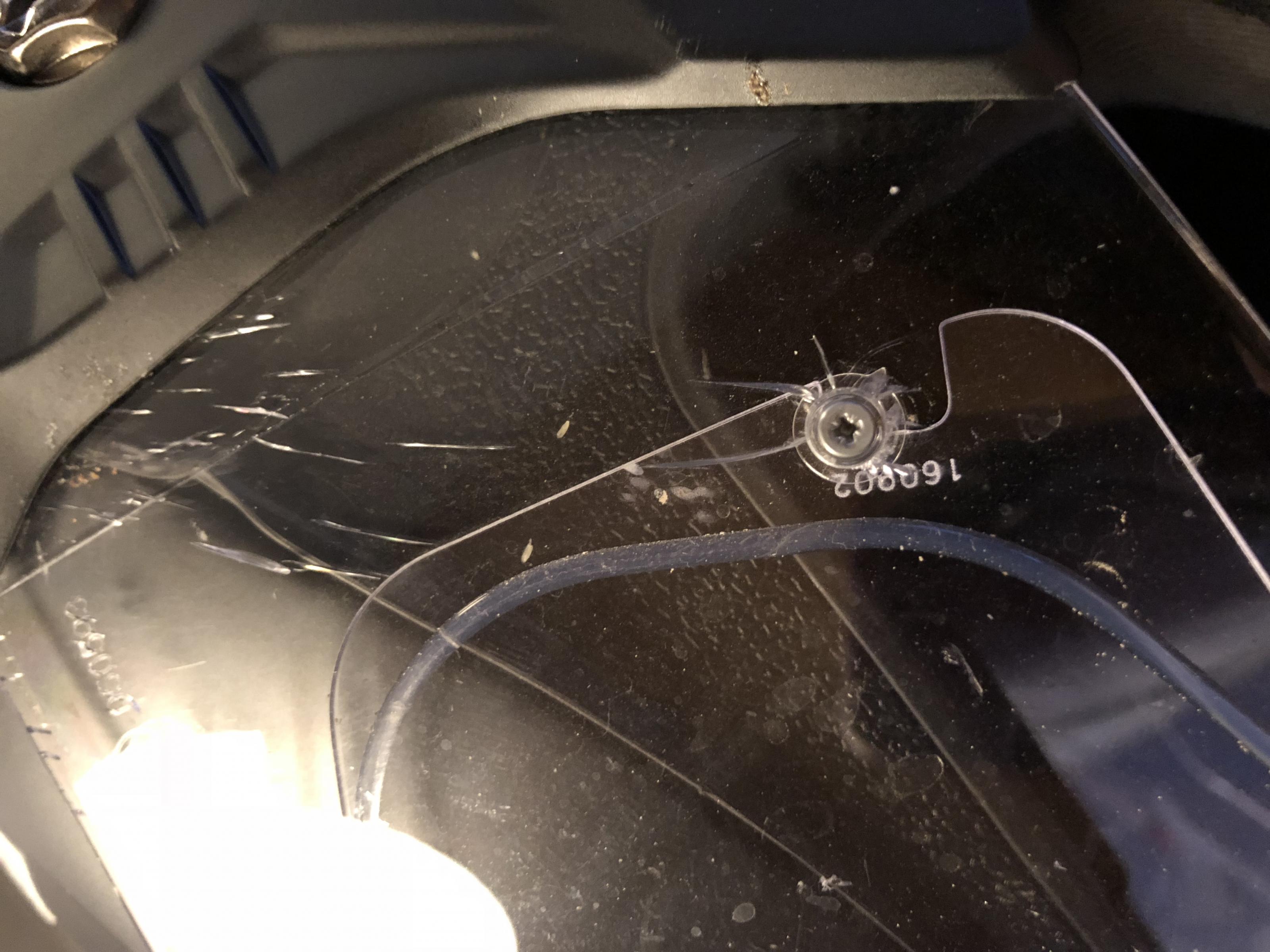 Das Ding macht nämlich mittlerweile extreme Geräusche, hängt verständlicherweise auch von Sitzposition und Windschild ab. Was am meisten stört ist, daß mittlerweile das zweite Visier erste Risse links und recht am Mechanismus, sowie um die Pinlock Pins hat. Beide Außen Pins (die kleinen Abstandsdödel aus Plastik) sind mittlerweile auch beim 2ten Visier, welches Louis kulanterweise dieses Frühjahr tauschte abgeflogen. Ich kann ja nicht jedes Jahr ein bis zwei Visiere verbrauchen