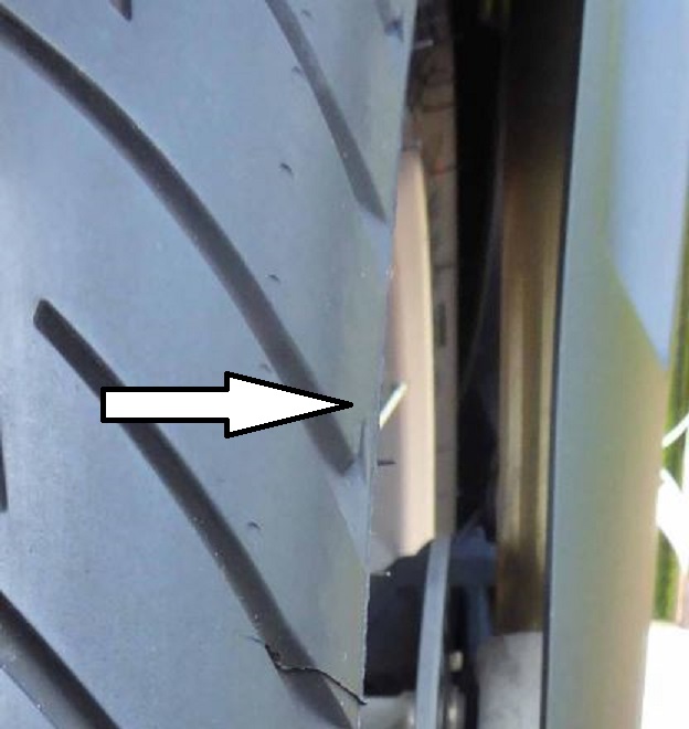 Was man auf den Fotos nicht sieht ist, dass es im Reifen richtige Wellen sind. Hab mir große Mühe gegeben keinesfalls mehr in die Kurve zu bremsen. Und trotzdem wurde es immer schlimmer.