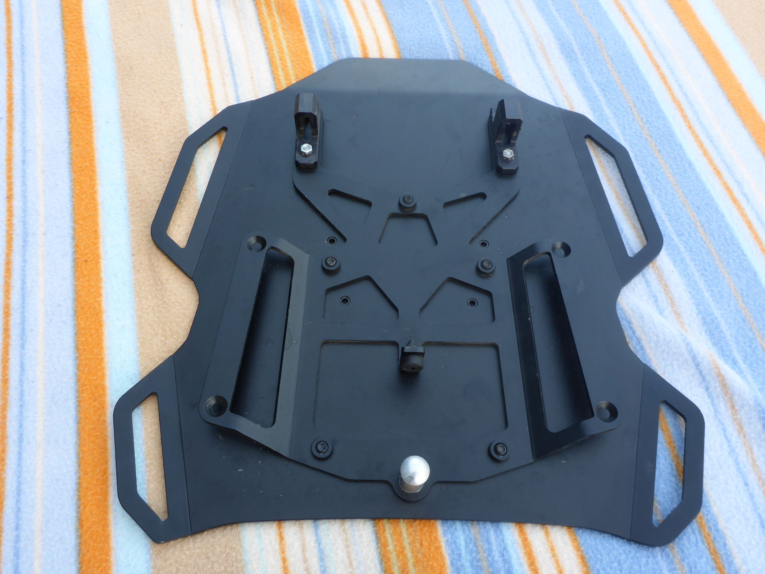 Das Teil wird anstelle des Soziussitzes an die orig. Befestigung eingeklingt und lässt sich dann wieder mit dem BMW-Sitzschloss entriegeln und entnehmen.
