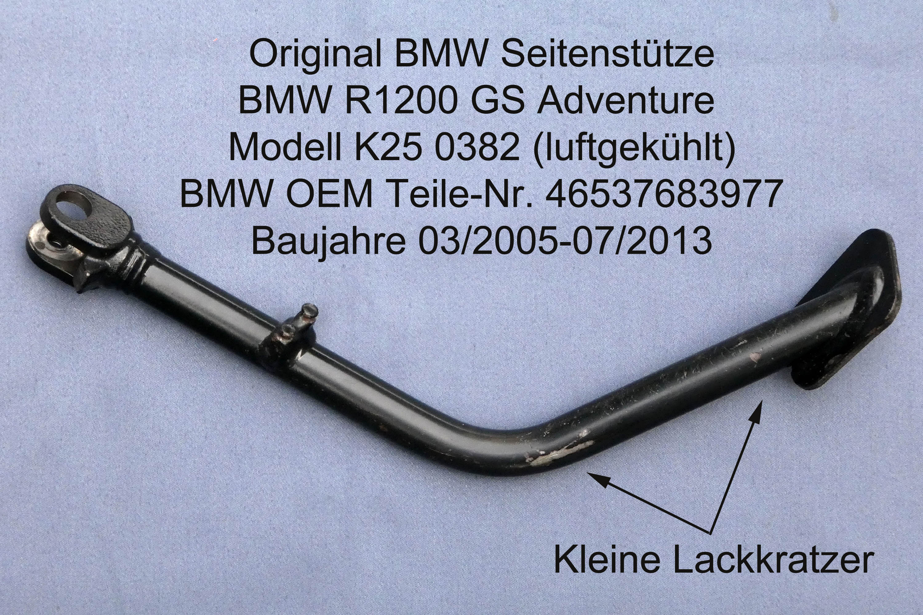 Seitenstütze (~ Seitenständer) gebraucht, Zustand gut, kleine Lackschäden. Wenig "gelaufen" (unter 10 Tkm). Ohne Zubehör. BMW OEM Nr 4653 7683 977. VB 35 € plus Versandkosten 4,50 € für Käufer.