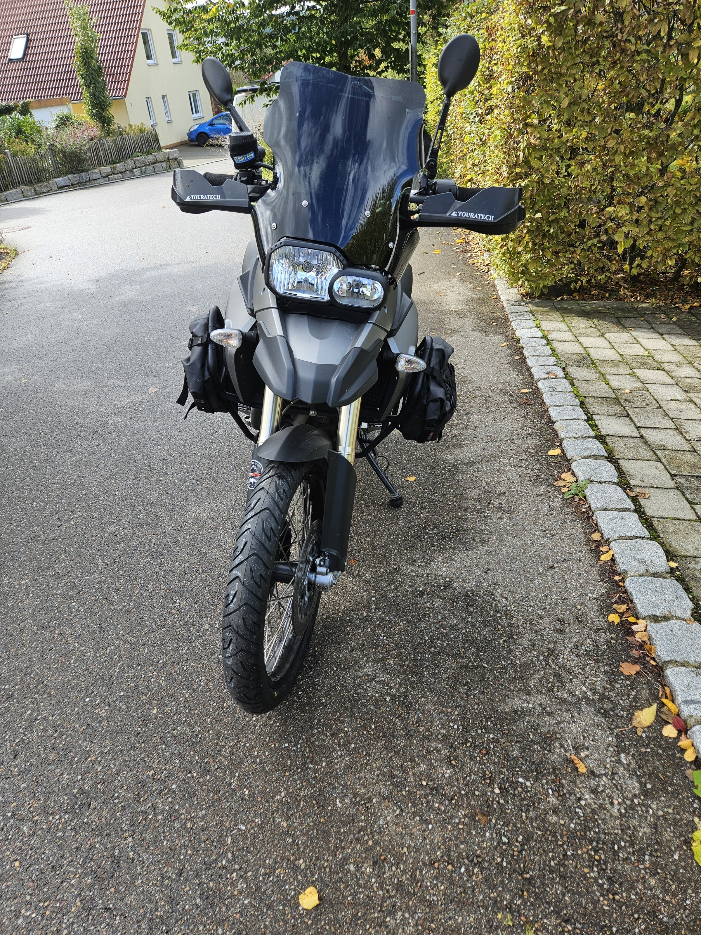 meine F800GS Baujahr 2008 war vermutlich mal tiefergelegt. Zumindest war beim Kauf die Vorspannung hinten ganz weich und vorne war die Gabel um ca. einen cm durchgesteckt. Ich fahre nun die GS hinten mit fast maximaler Vorspannung und vorne die Gabel auf normaler Höhe. Dabei steht das Moped auf dem Seitenständer sehr schräg.