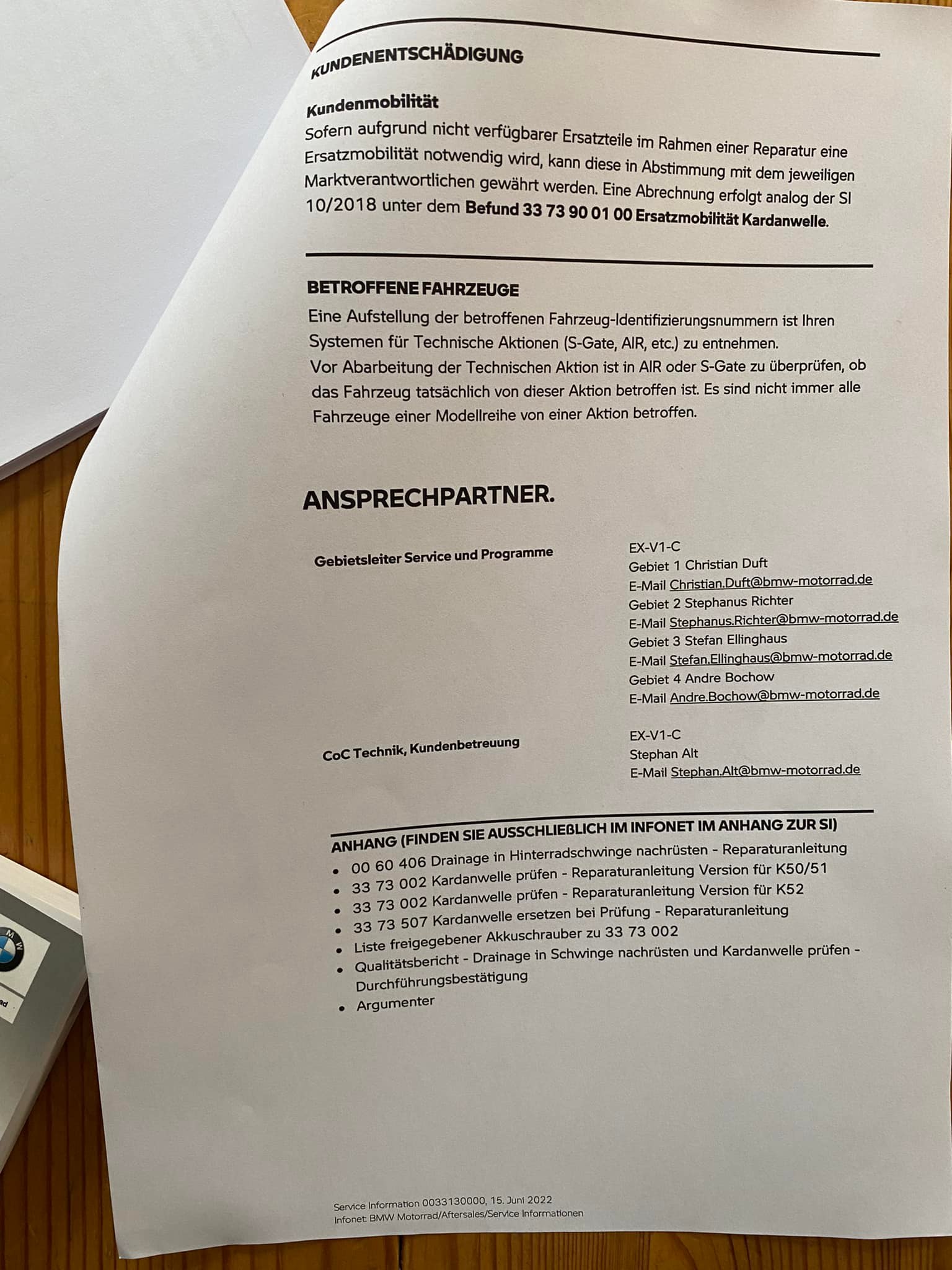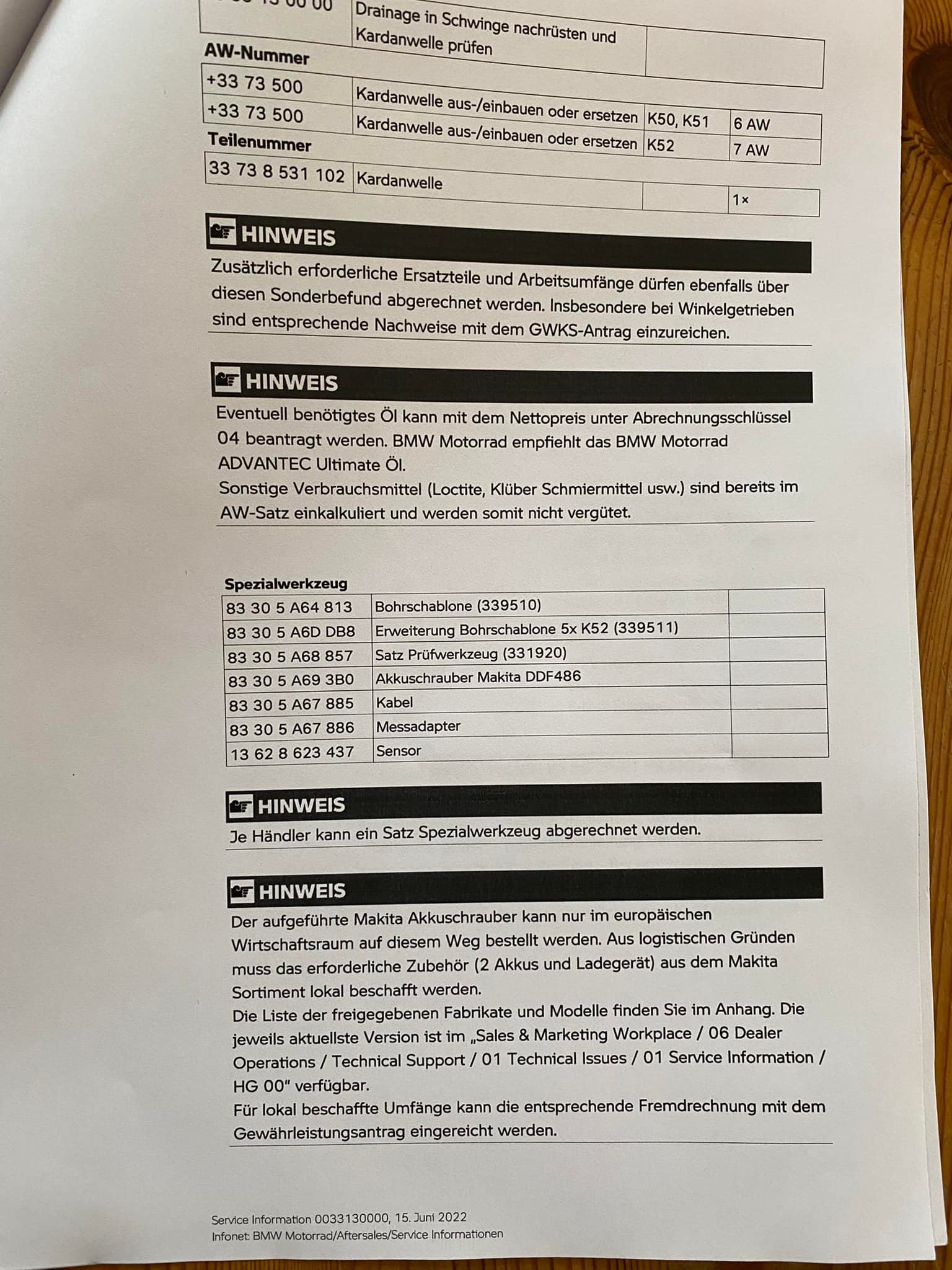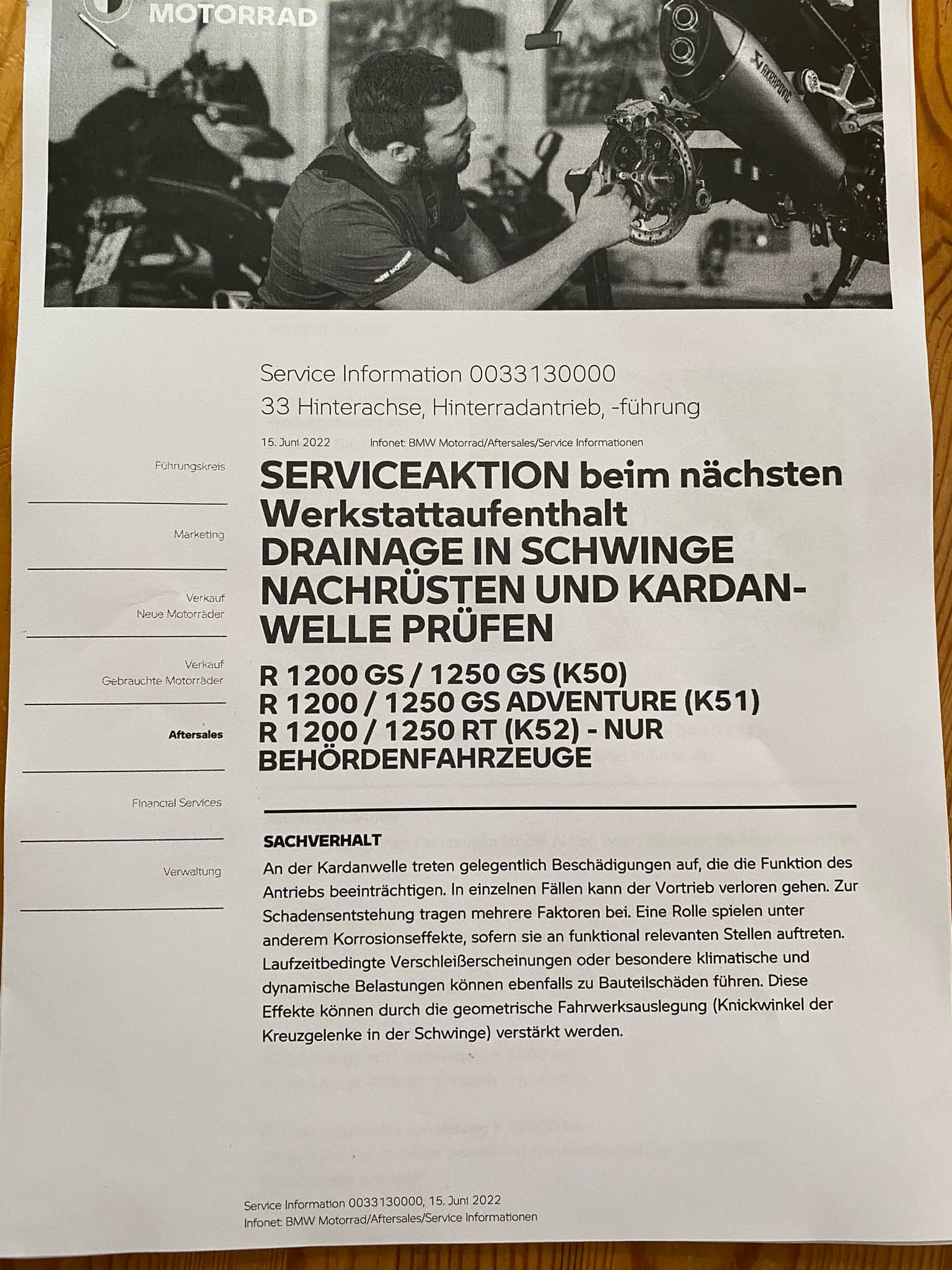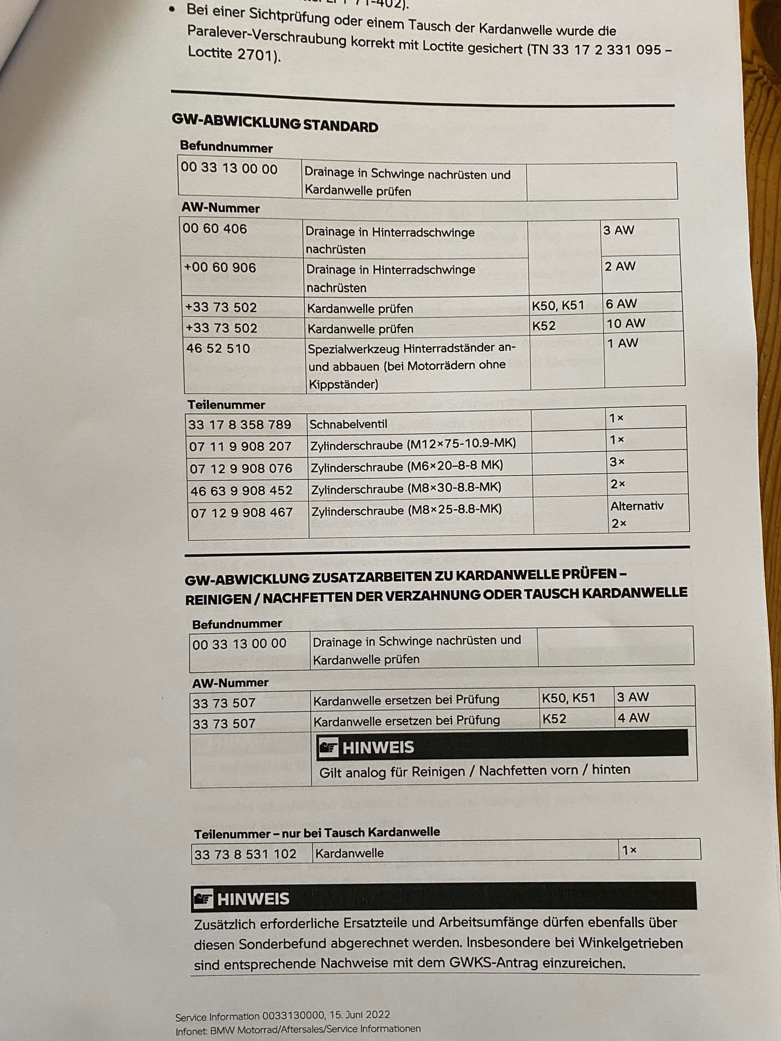 Kann ich mir anders nicht vorstellen. Wenn eine Anweisung von BMW an die Händler vorliegt, dann wird diese ohne konkreten Kunden-Auftrag vorgenommen. Insofern interesiert dein Serviceheft (Inspektionen) nicht, zumal der Kardan lt. BMW wartungsfrei ist. Wenn du zu den betroffenen zählst wird der Serienstand nach Service-Information 0033130000 nachgebessert, that´s it.Moin moin,