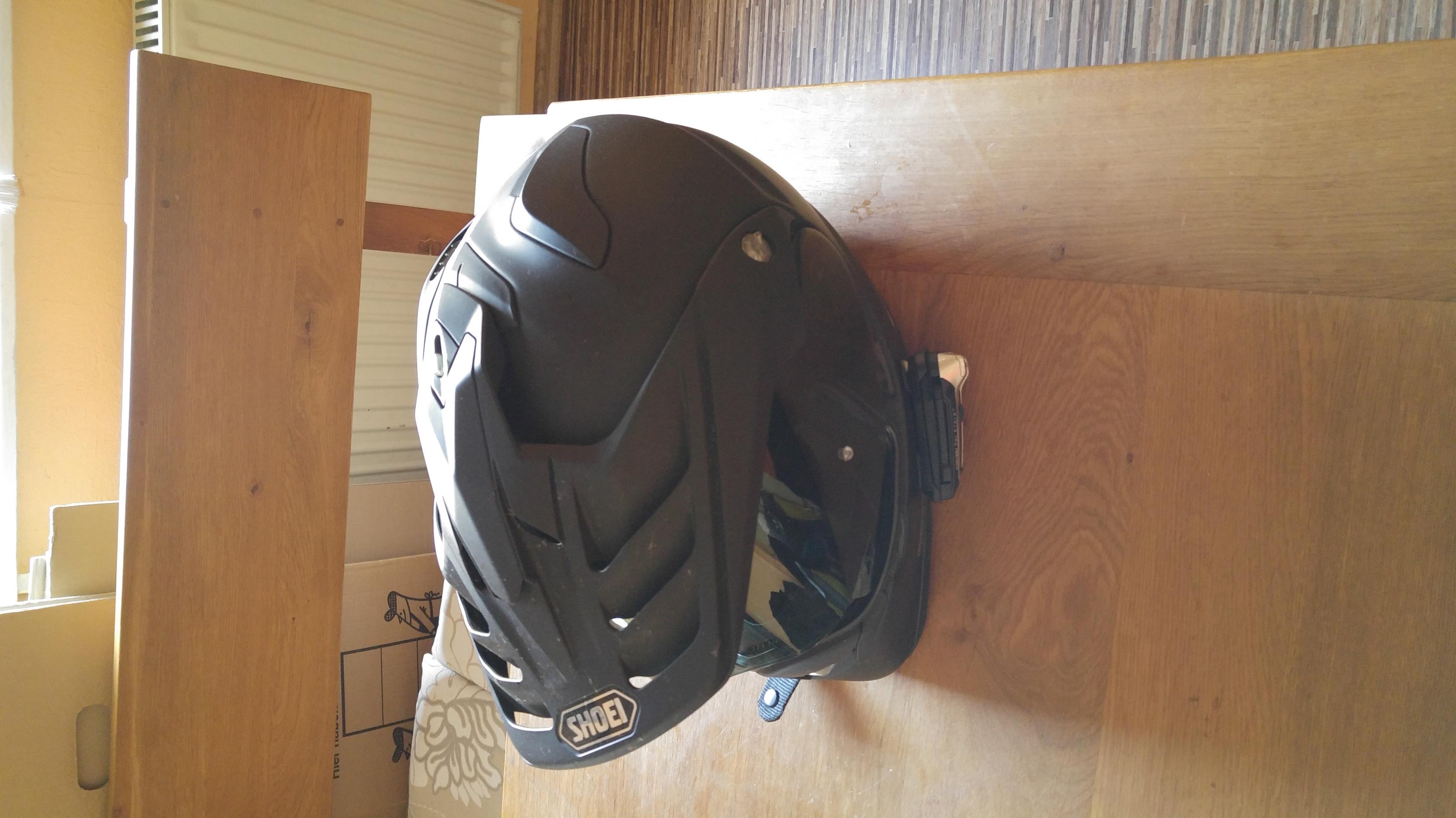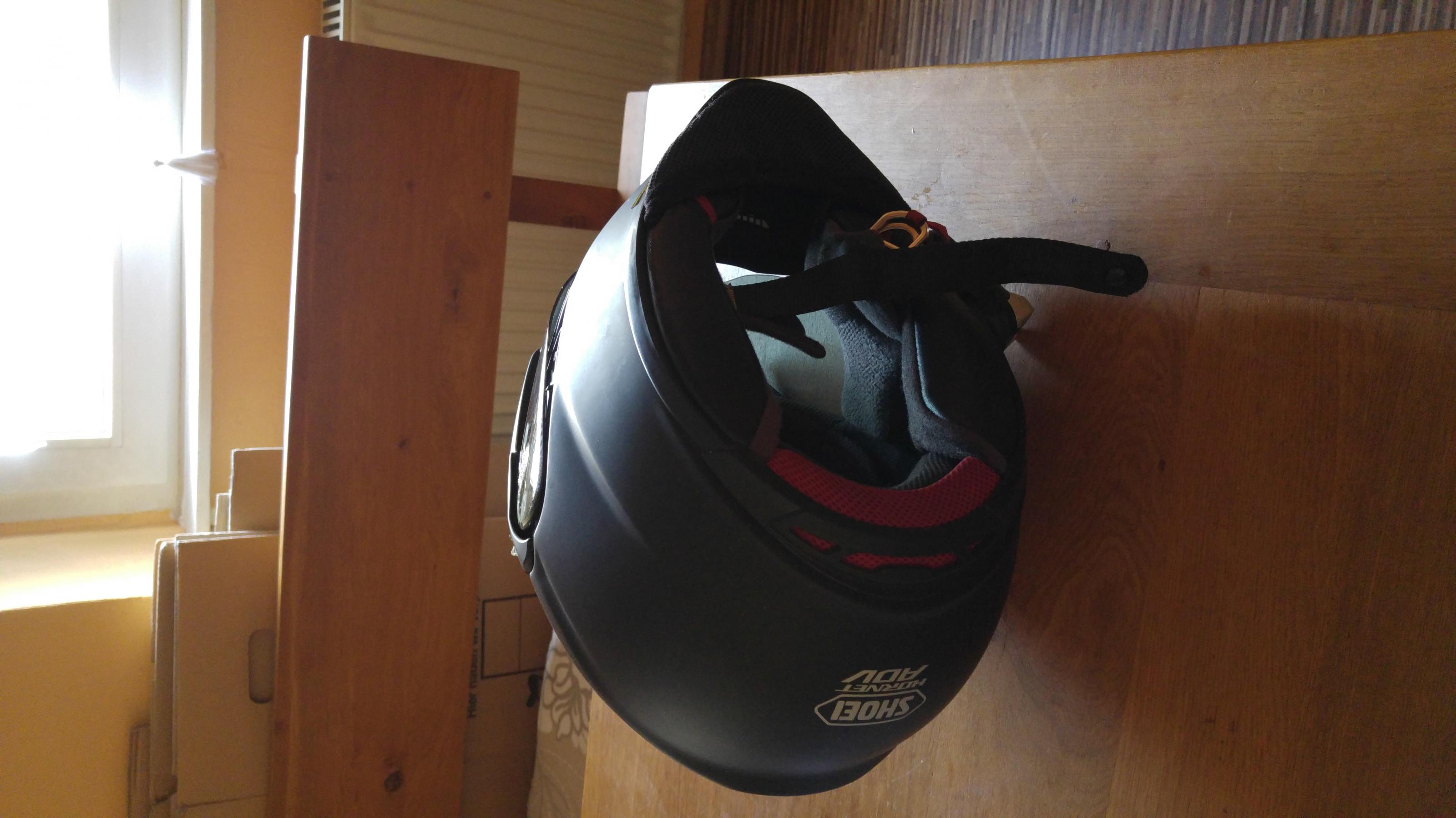 Motorradhelm Shoei Hornet Adv Größe L in Schwarz zu verkaufen. Den Helm habe ich letztes Jahr bei einer Tombola gewonnen und auch einige Zeit gefahren, jedoch ist er mir etwas zu weit. Er ist absolut gepflegt, nie runter gefallen und hat keine Beschädigungen. Der Helm wird mit einem klaren und einem getönten Visier ( Wert 60 Euro ) verkauft. Das Innenfutter wurde natürlich gereinigt. Das Kommunikationsgerät Cardo Packtalk, was auf einigen Bildern zu sehen ist, ist nicht in dem Preis enthalten.