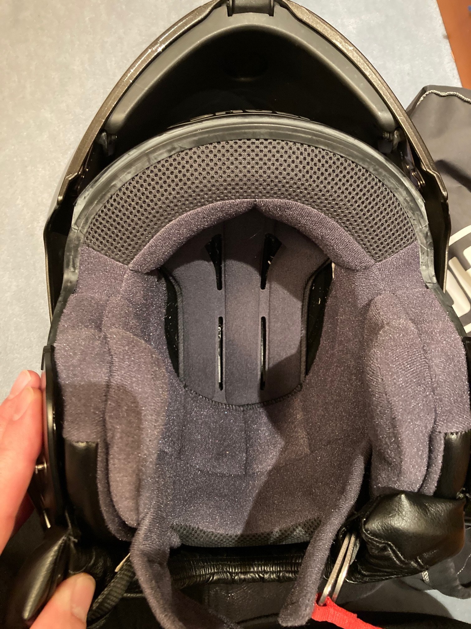 Helm ist neuwertig, er wurde nur auf zwei Tagestouren getragen, danach hat meine Frau festgestellt, dass sie doch keinen „Shoei-Kopf“ hat.