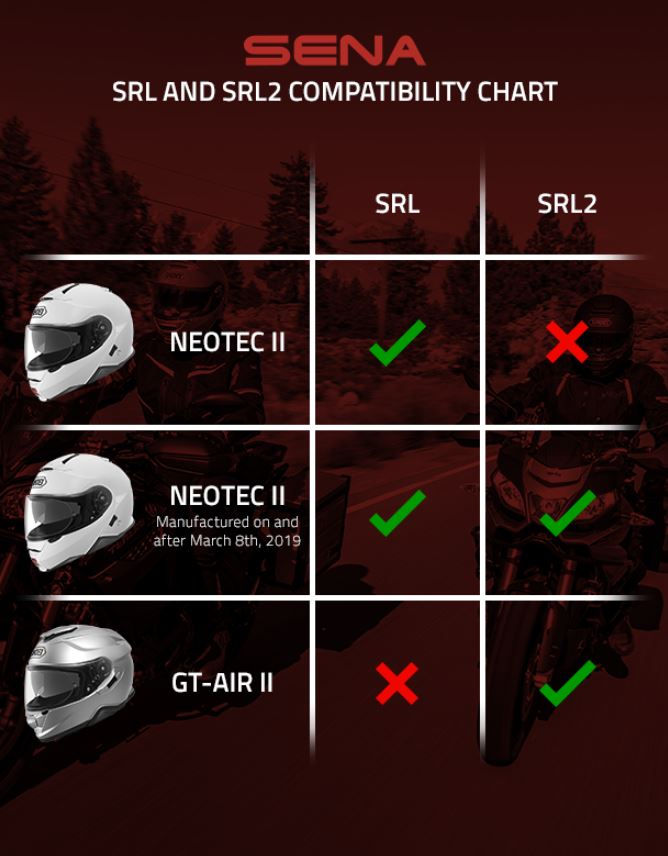Nachdem mir in den ganzen Foren keine Antwort geliefert werden konnte, habe ich via Facebook Kontakt mit Sena aufgenommen. Dort wurde mir mitgeteilt, dass das SRL2 auch in den alten NEOTEC 2 eingebaut werden kann (Zitat: " Hallo Oliver, bei dem Helm kannst du entweder das SRL oder das SRL2 verbauen. Liebe Grüße