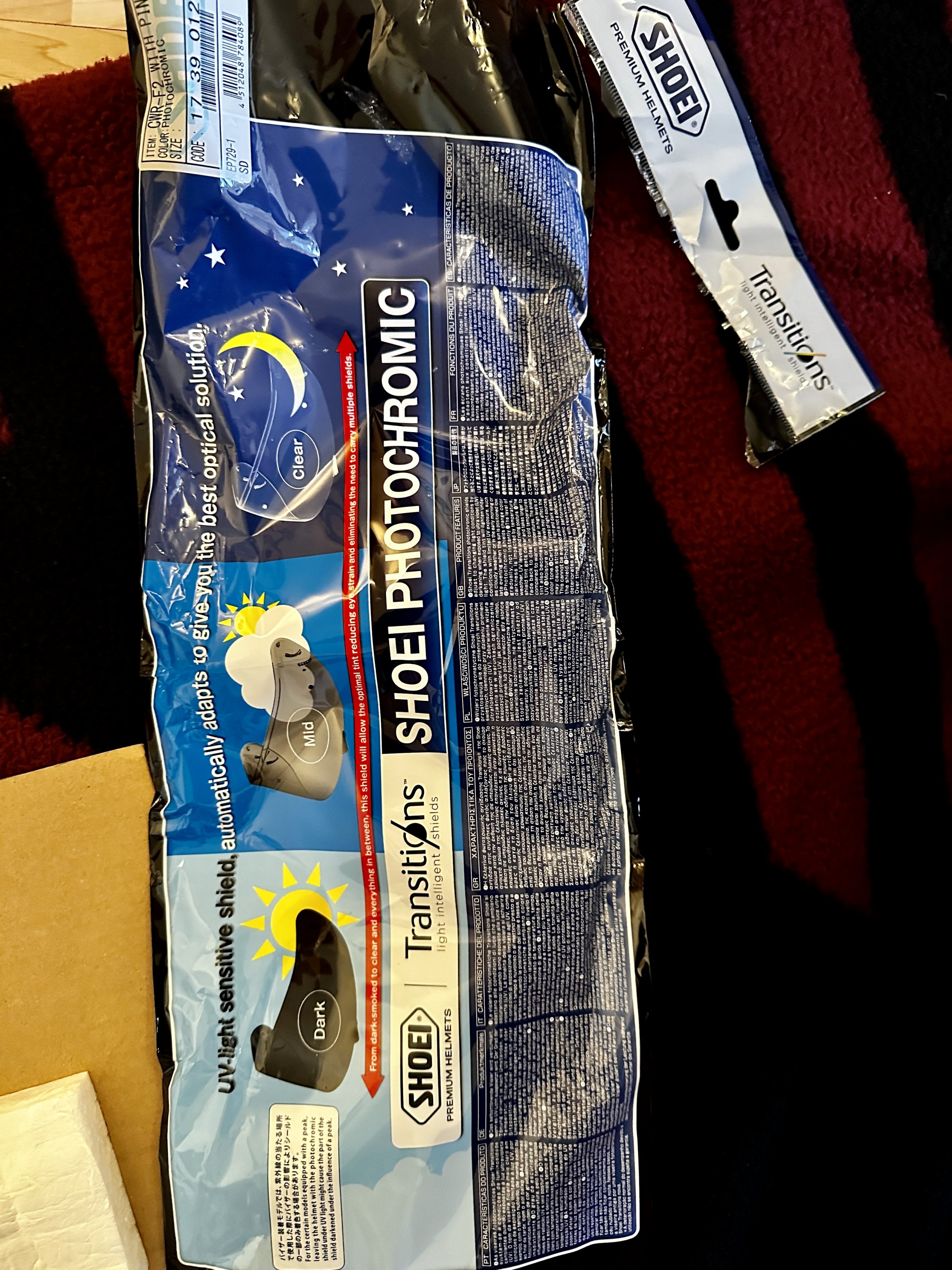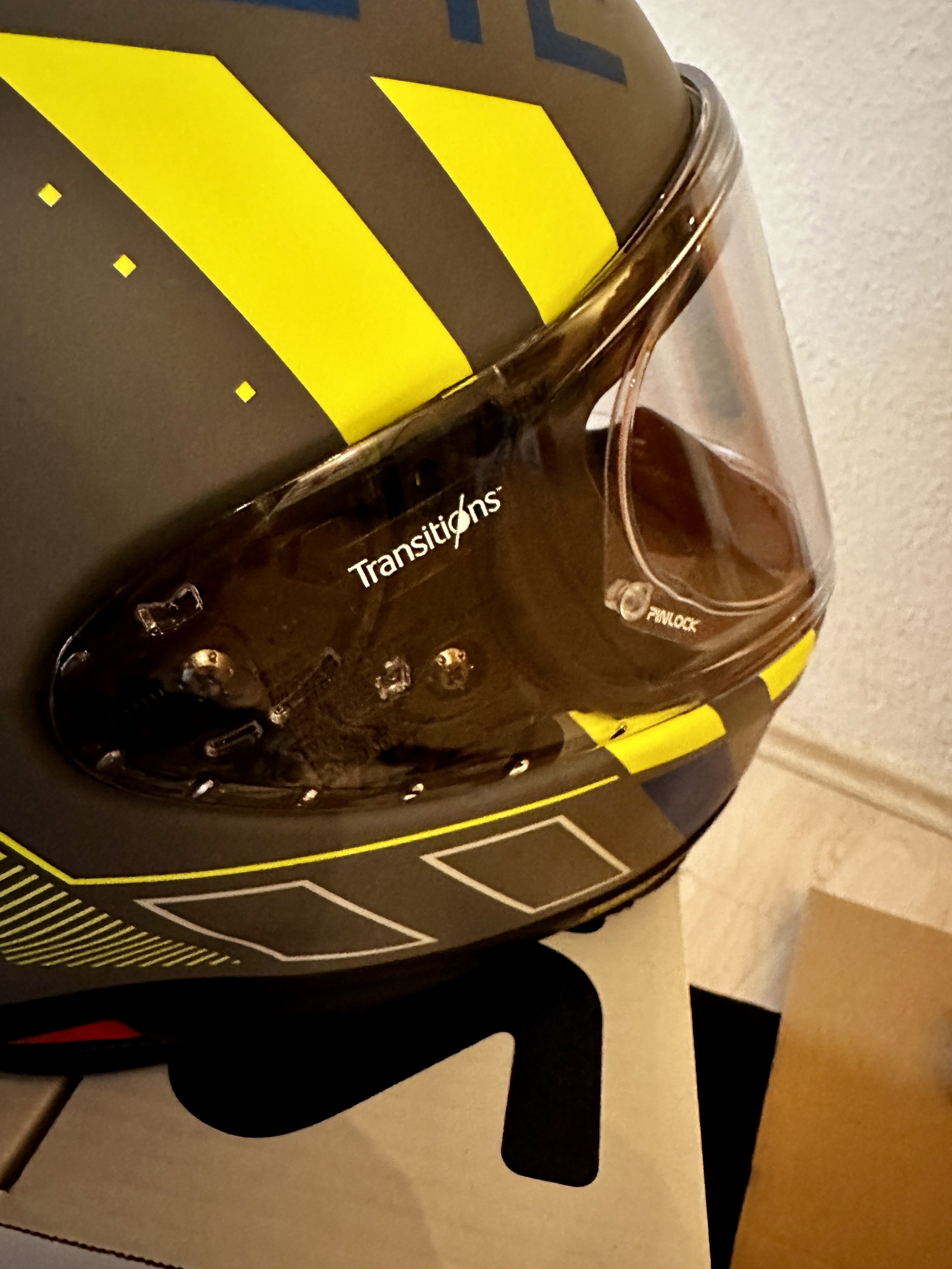 Aktuell ist das Selbsttönende Visier CWR-F2 inklusive Pinlock montiert. Zusätzlich ist ein Neues unbenutztes Klares Visier, und noch eine neue unbenutzte Pinlock Scheibe mit dabei.