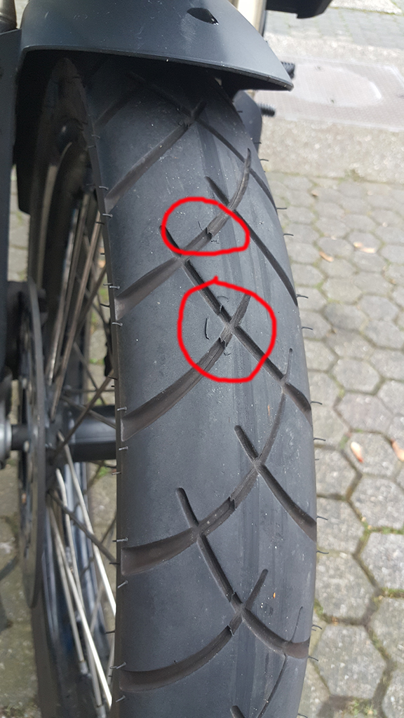Eigentlich war ich bislang sehr zufrieden mit dem Reifen, allerdings habe ich in letzter Zeit gerade bei langsamerer Fahrt und bei Spurrillen oder ähnlichem ein seltsam teigiges Gefühl am Vorderrad.