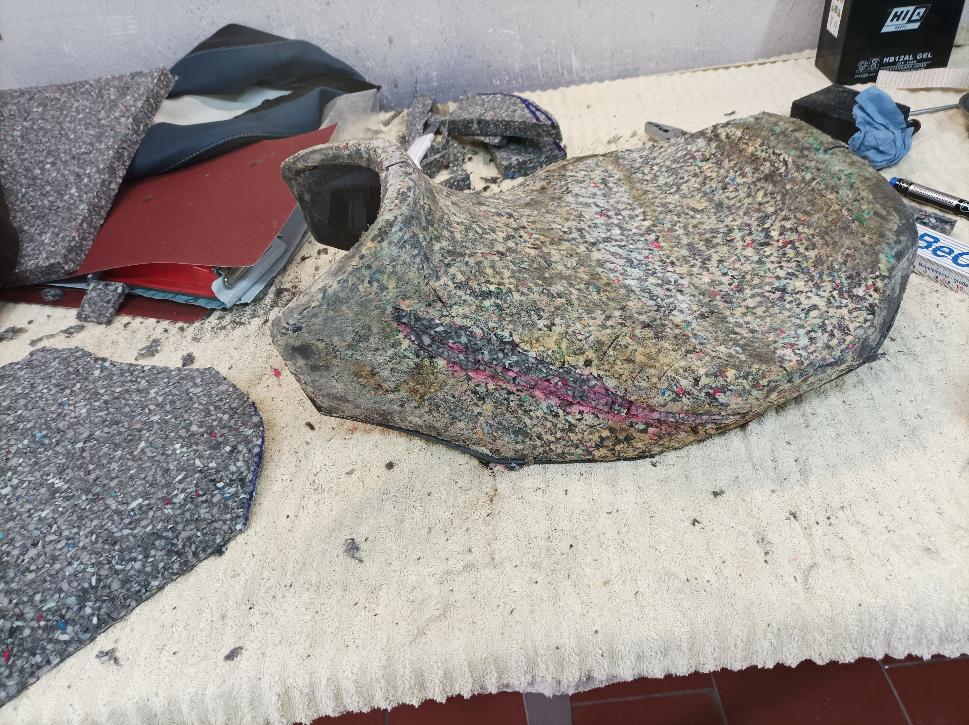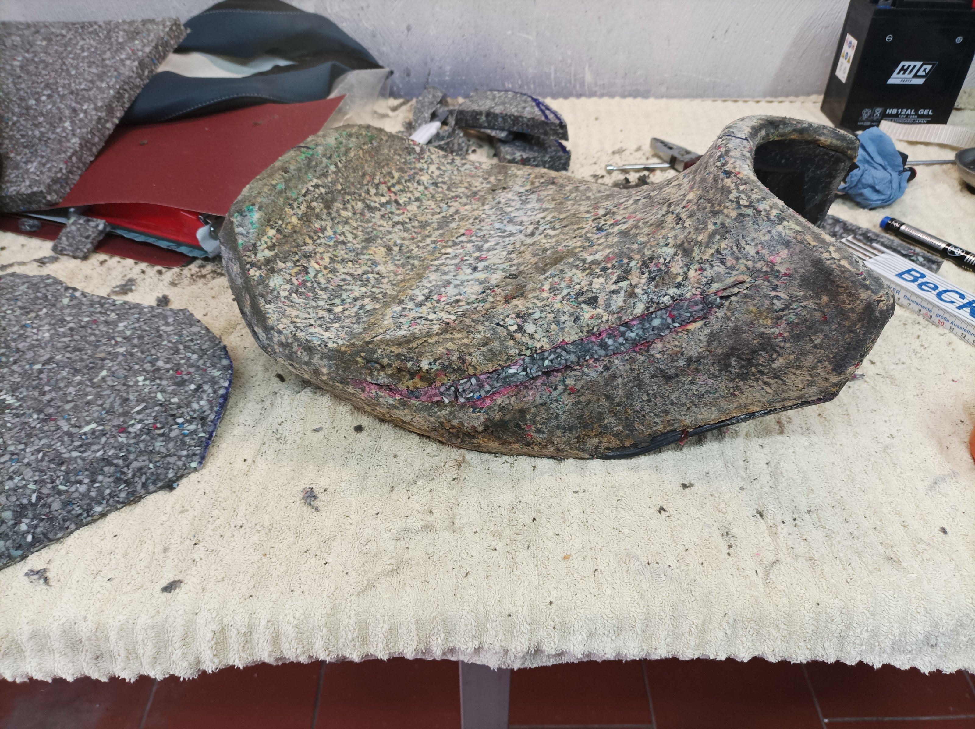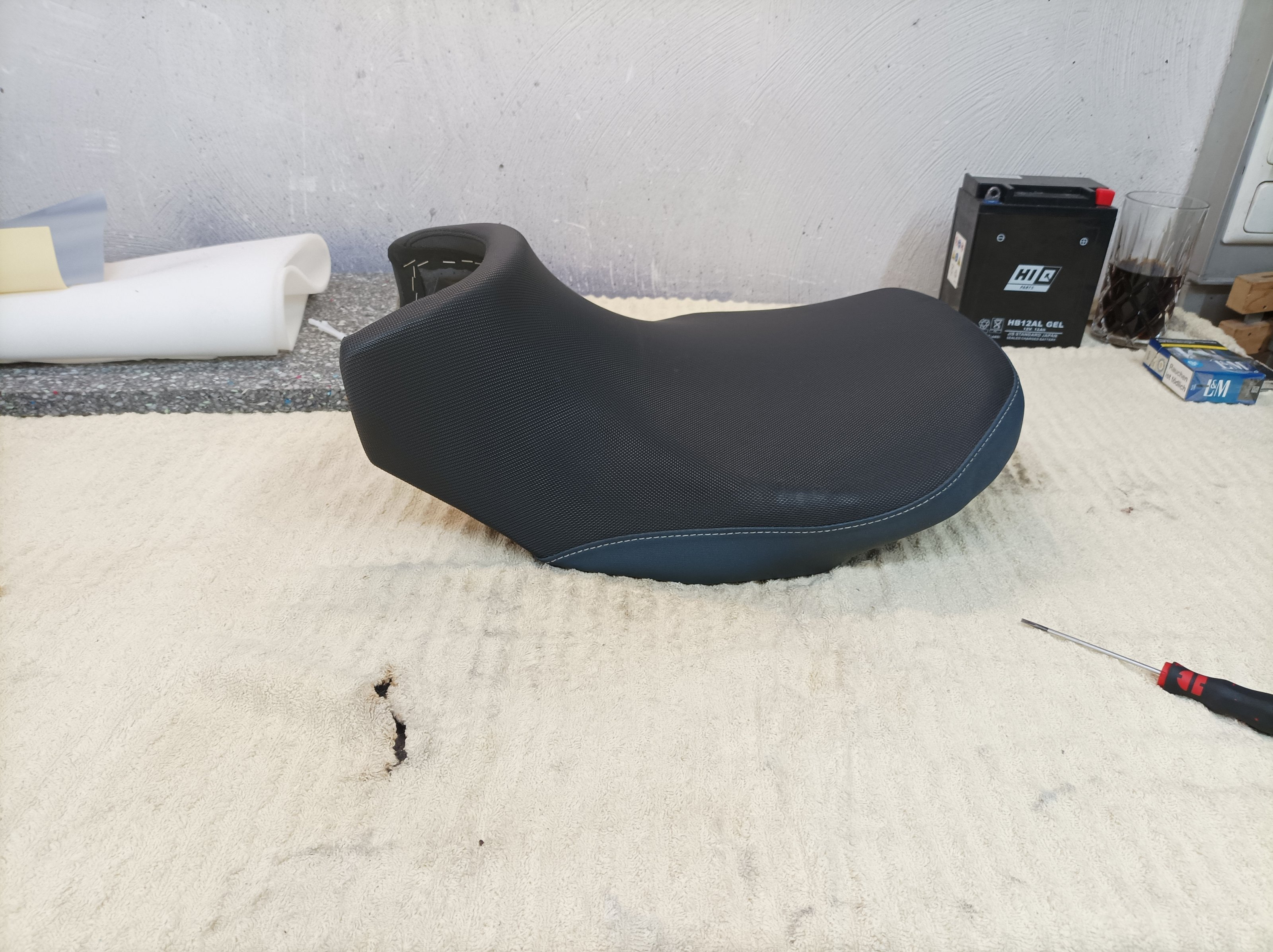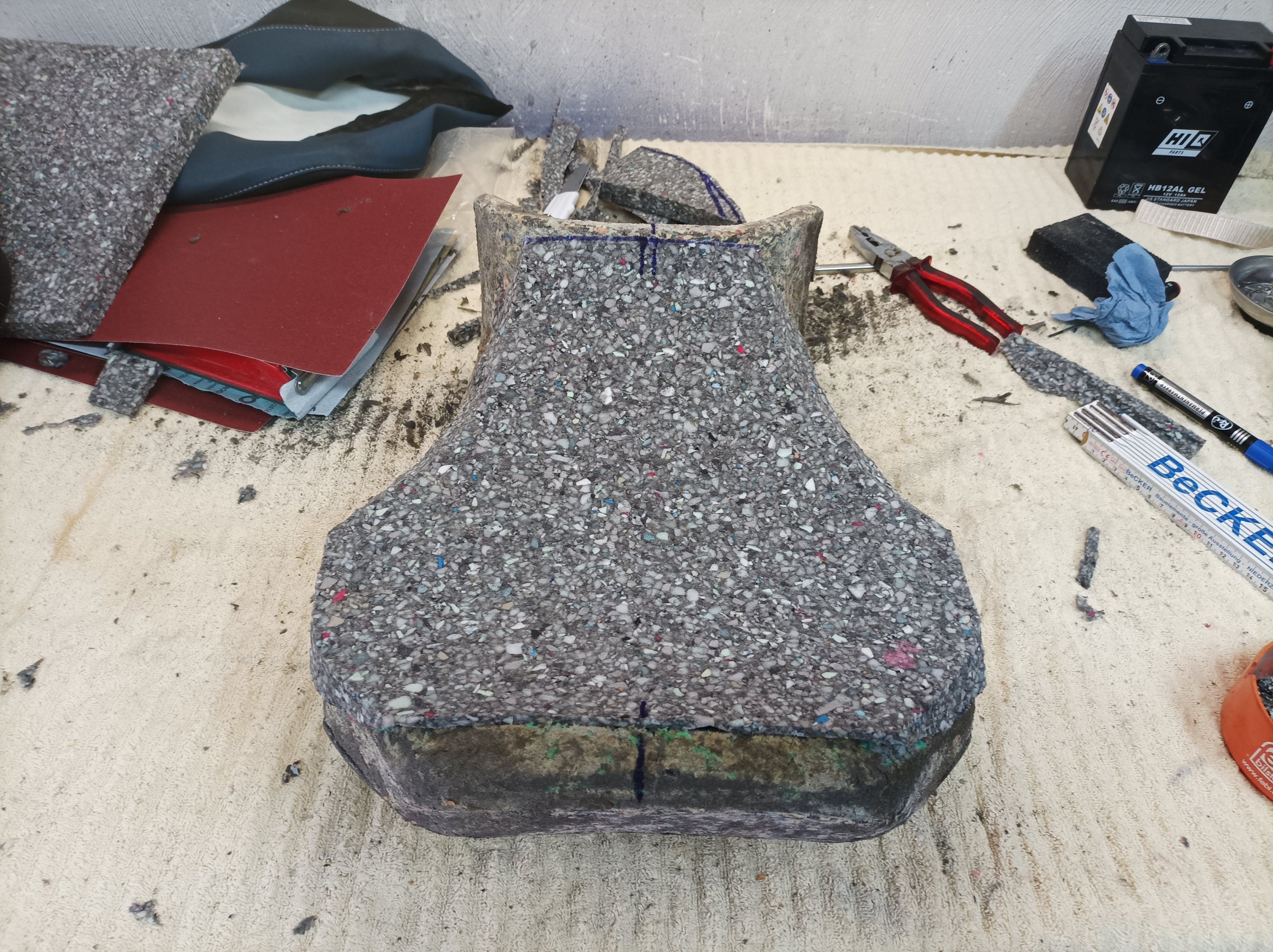 Ich habe in der Vergangenheit bereits die Sitzbank meiner 1250 Bandit und die der F650GS umgearbeitet und hatte daher wenig Respekt davor.