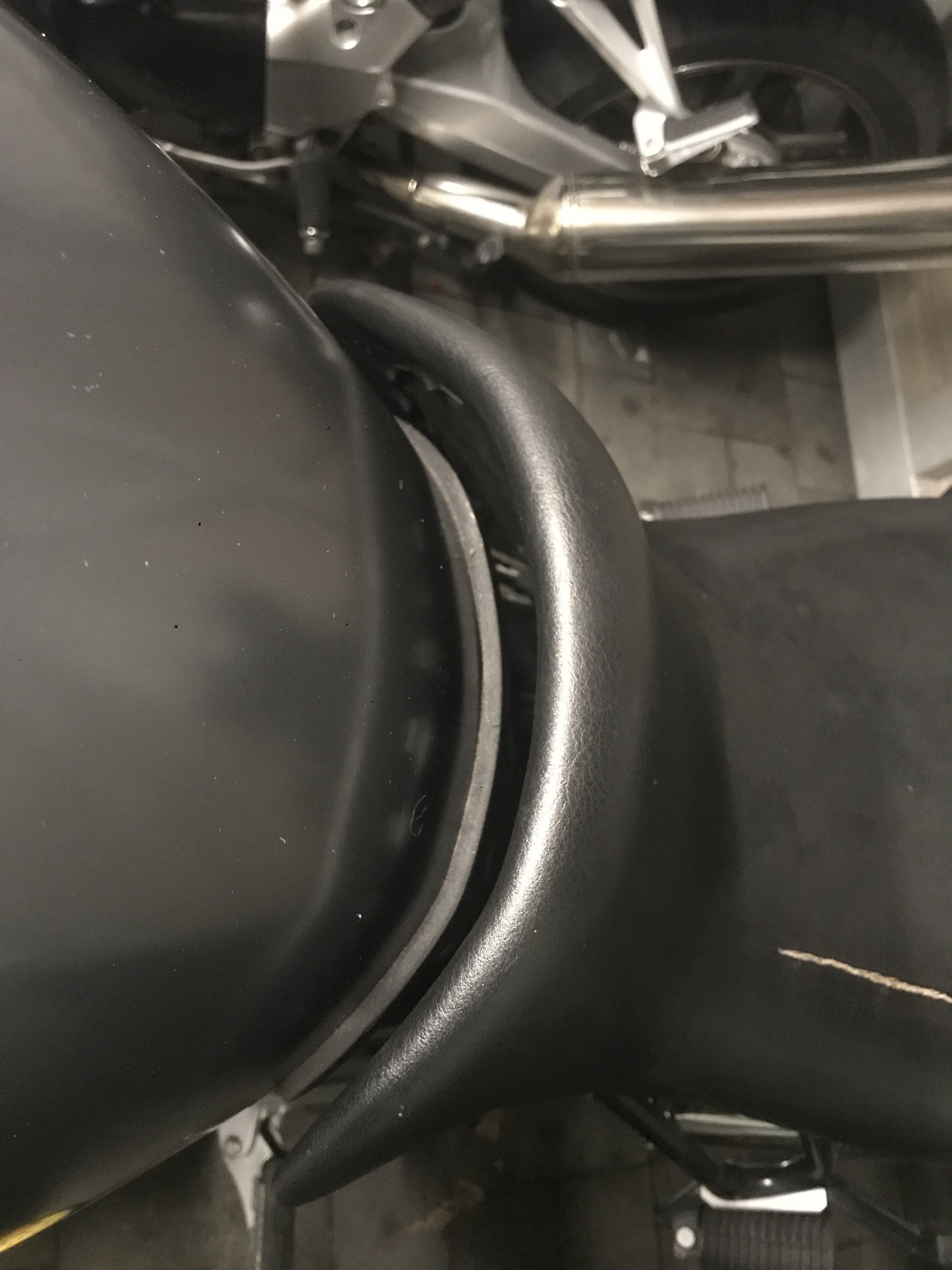 Heute habe ich mich mal etwas intensiver mit meiner neuen Mühle auseinander gesetzt und u.a. die Sitzverstellung ausprobiert. Wenn ich den Sitz in die obere Position stelle, habe ich eine große Lücke (2-2,5cm) zum Tank, das sieht ziemlich blöd aus.