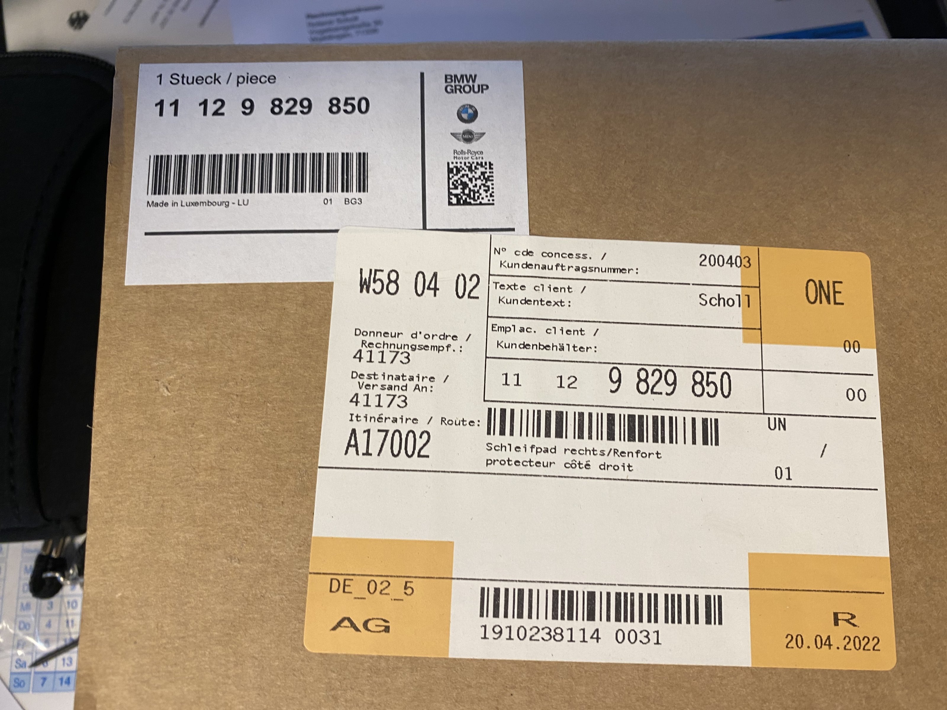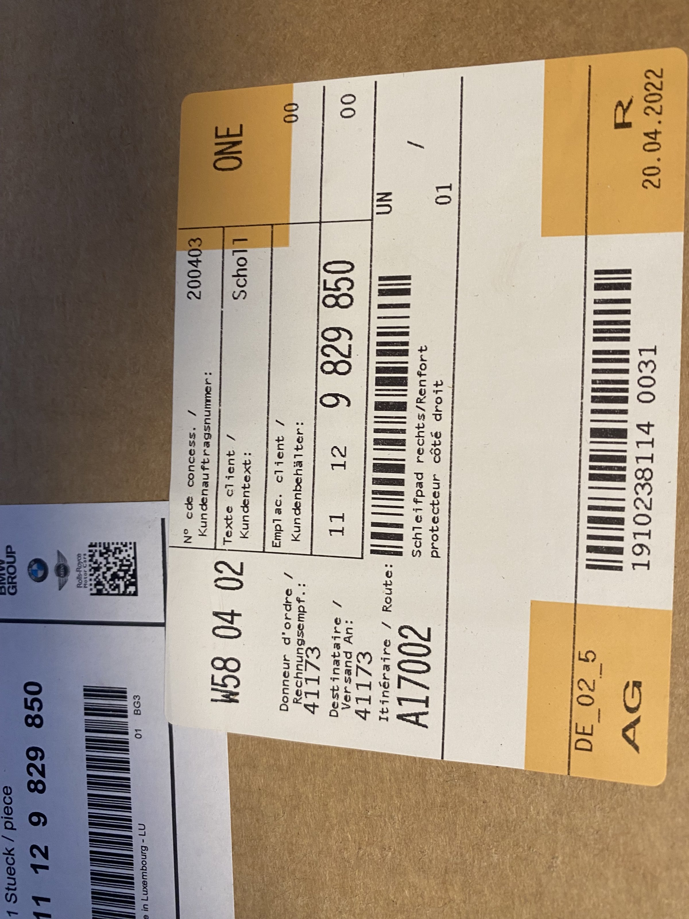 Die Teilenummer in Klammern.
