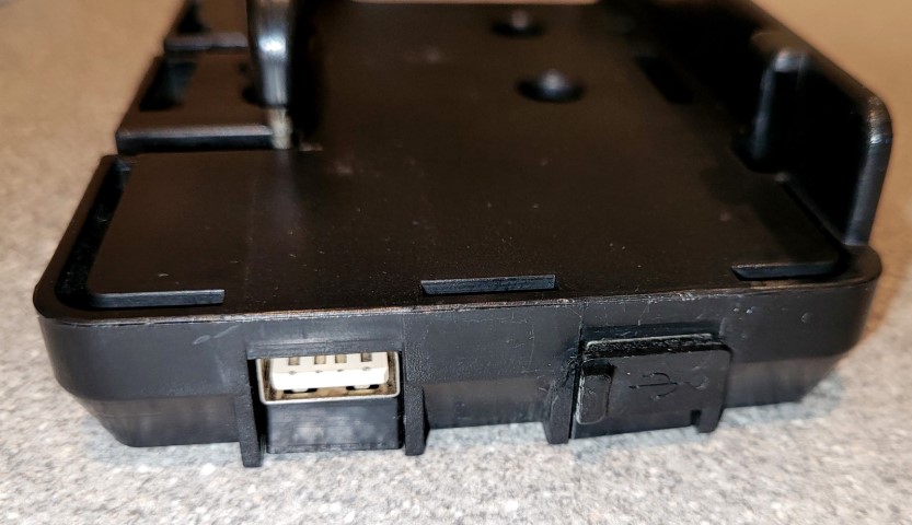 Das Teil wird- sofern nicht ohnehin bekannt- in den originalen Navihalter eingeklemmt und darin gesichert. Es verfügt über 2 seitliche USB- Anschlüsse, über welche das Smartphone sowie ein weiteres Gerät während der Fahrt per Kabel geladen werden kann (Kabel ist nicht dabei).