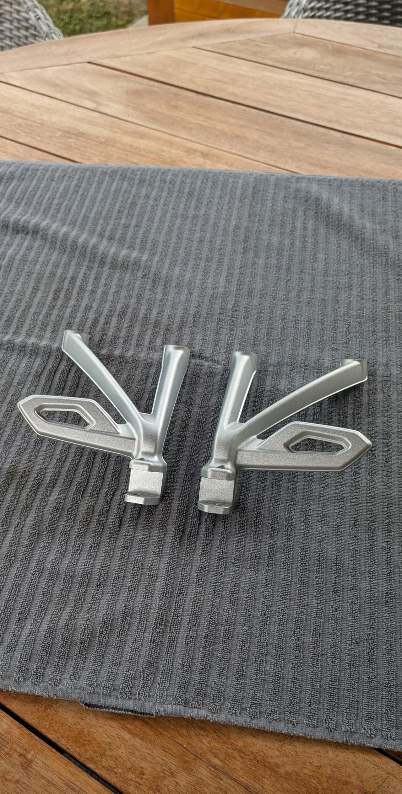 Wegen Motorradwechsel biete ich diese beiden Fußrastenhalter der Adventure an. Sie werden benötigt um den Original Kofferträger der Adventure zu montieren.