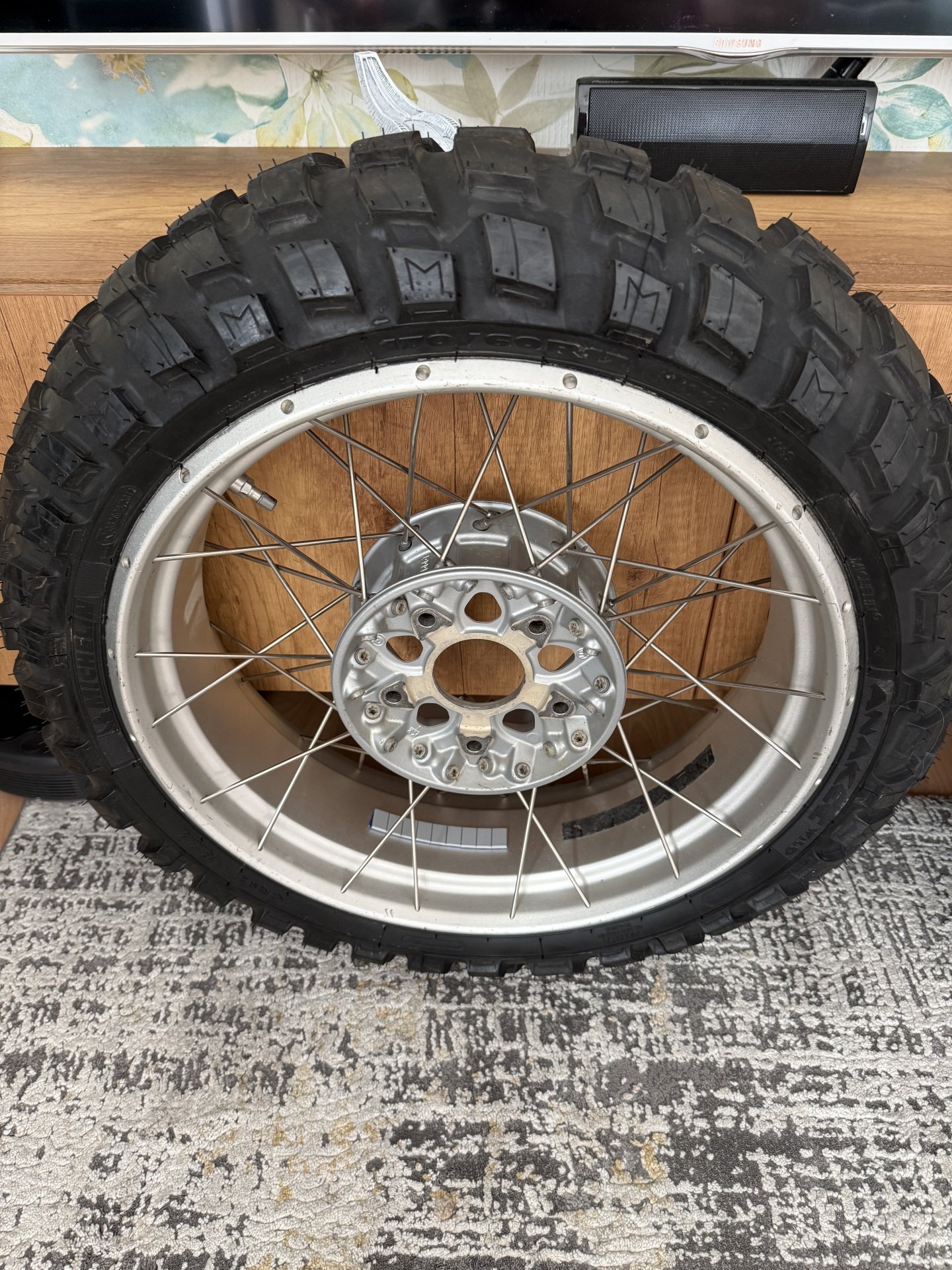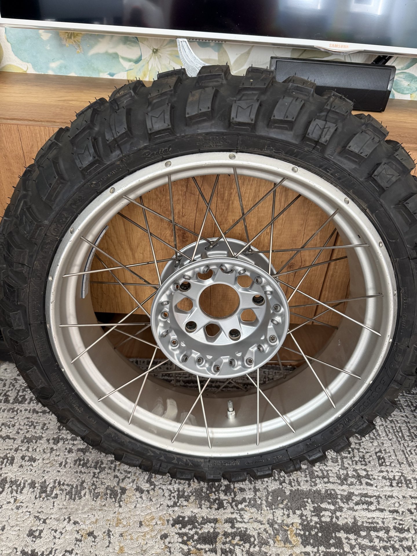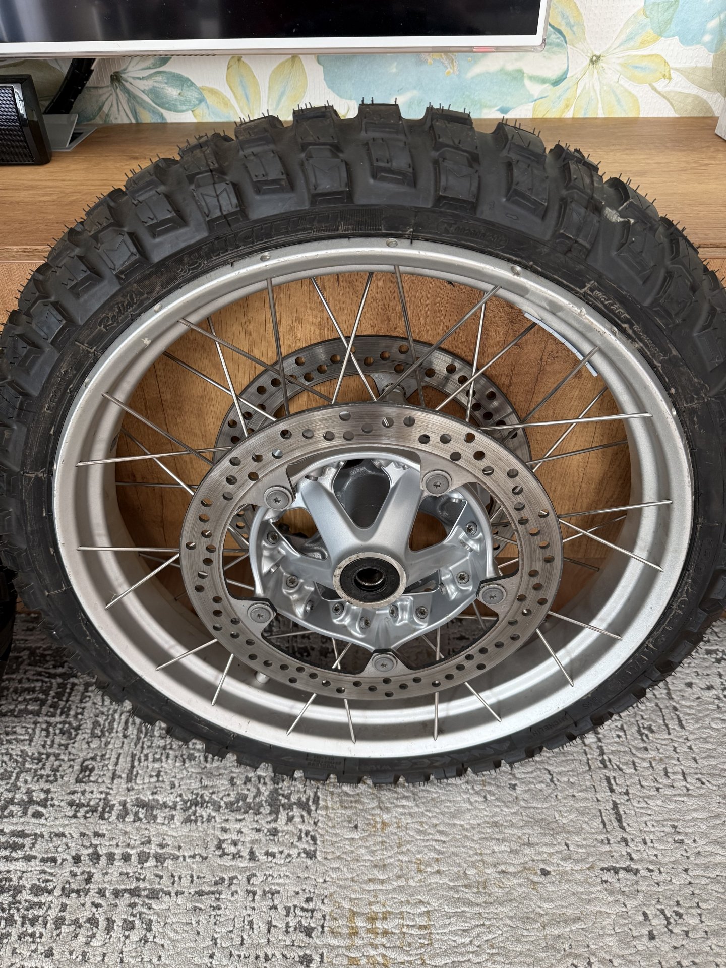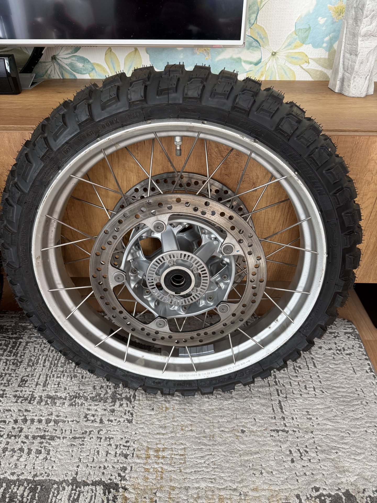 Verkaufe einen Satz gebrauchte Speichenfelgen mit neuen Michelin Anakee Wild Reifen. Die Felgen sind komplett mit Bremsscheiben und PDC-Sensoren ausgestattet.