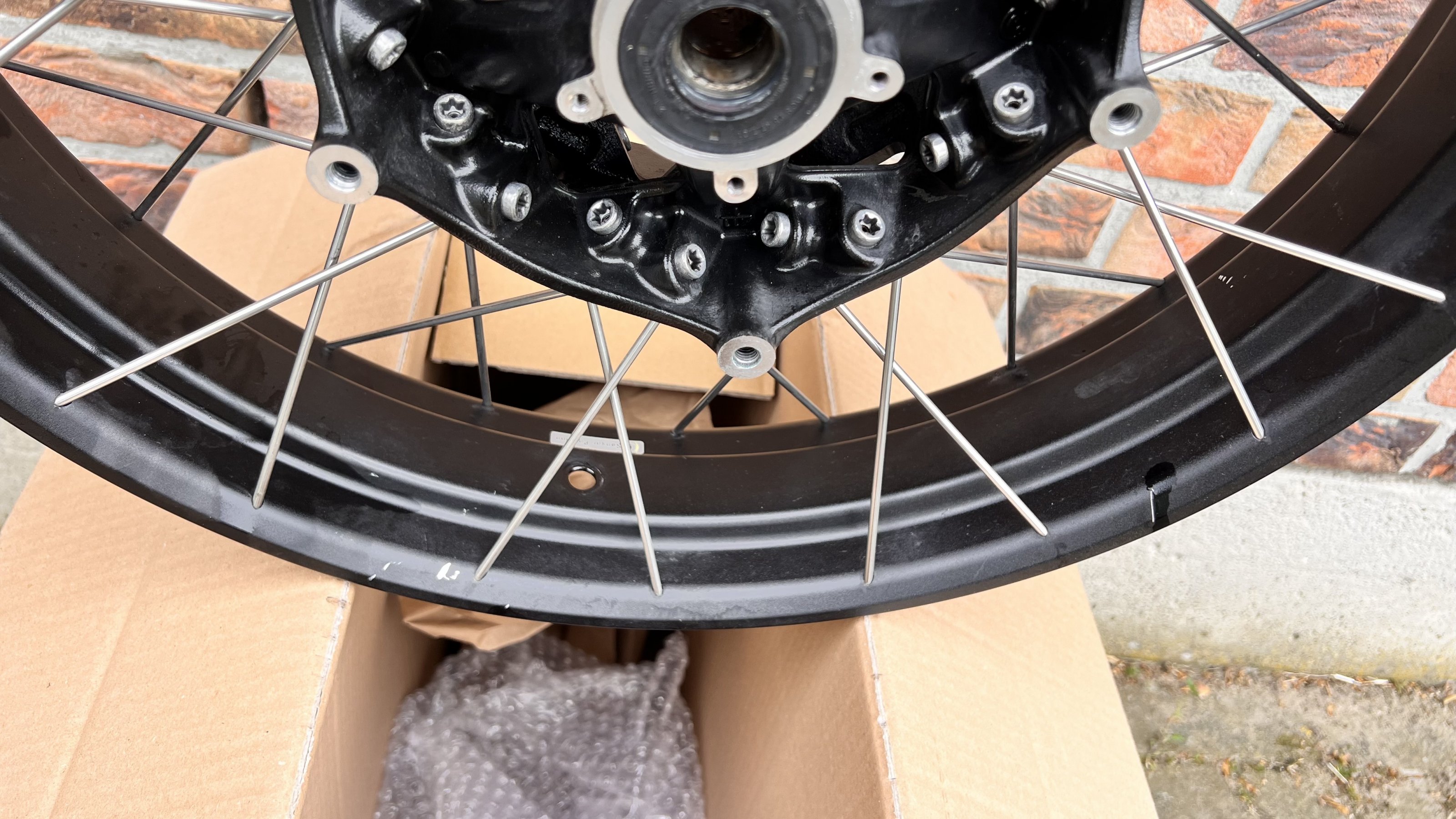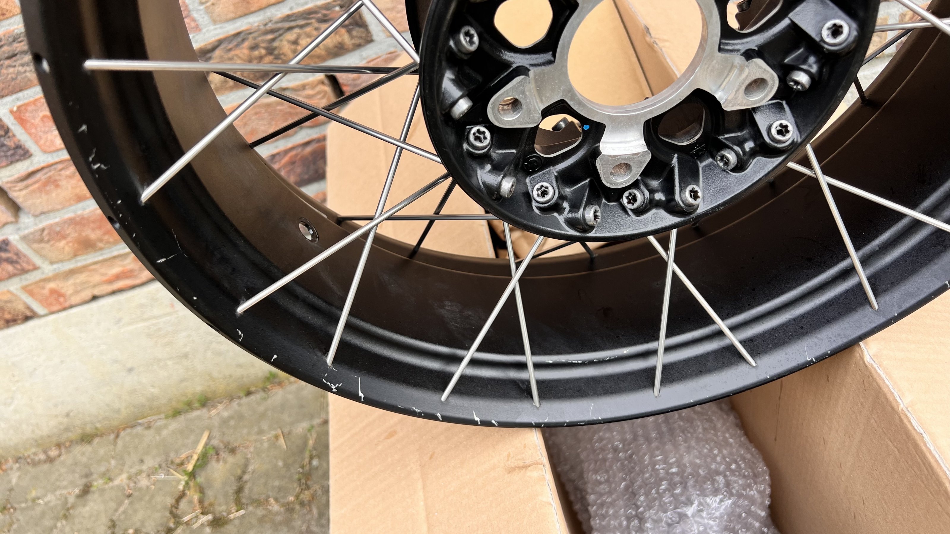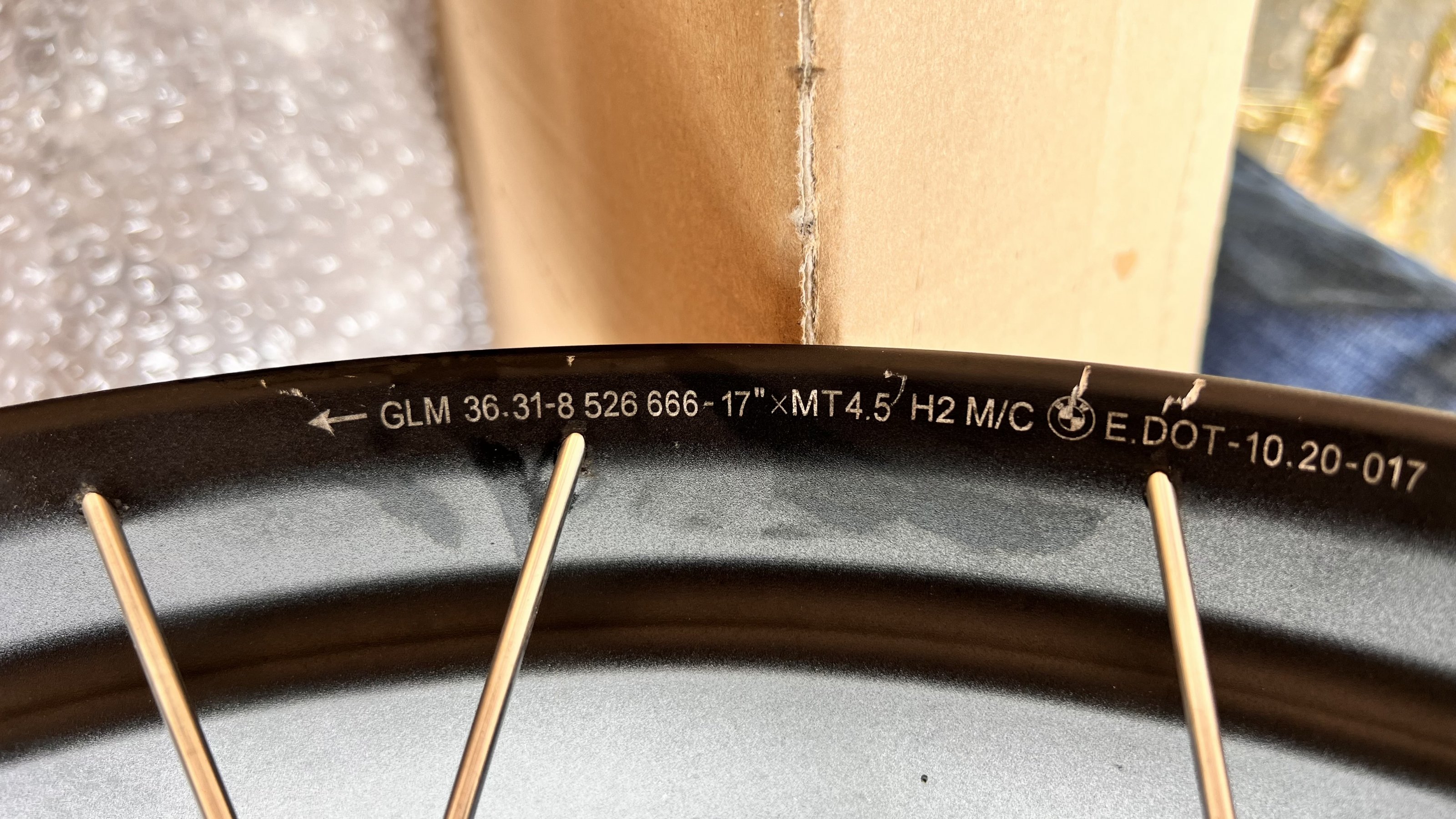 Leichte Kratzer im Felgenbett, ohne Beeinträchtigung der Fahrbarkeit.