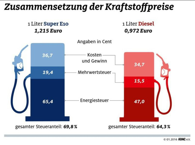 Ansonsten habe ich hier noch eine ältere Übersicht gefunden. Kann aber auch Fake sein, muss jeder selbst überprüfen. Die aktuelle Öko- und/oder CO2 Steuer ist da wohl auch noch nicht berücksichtigt.