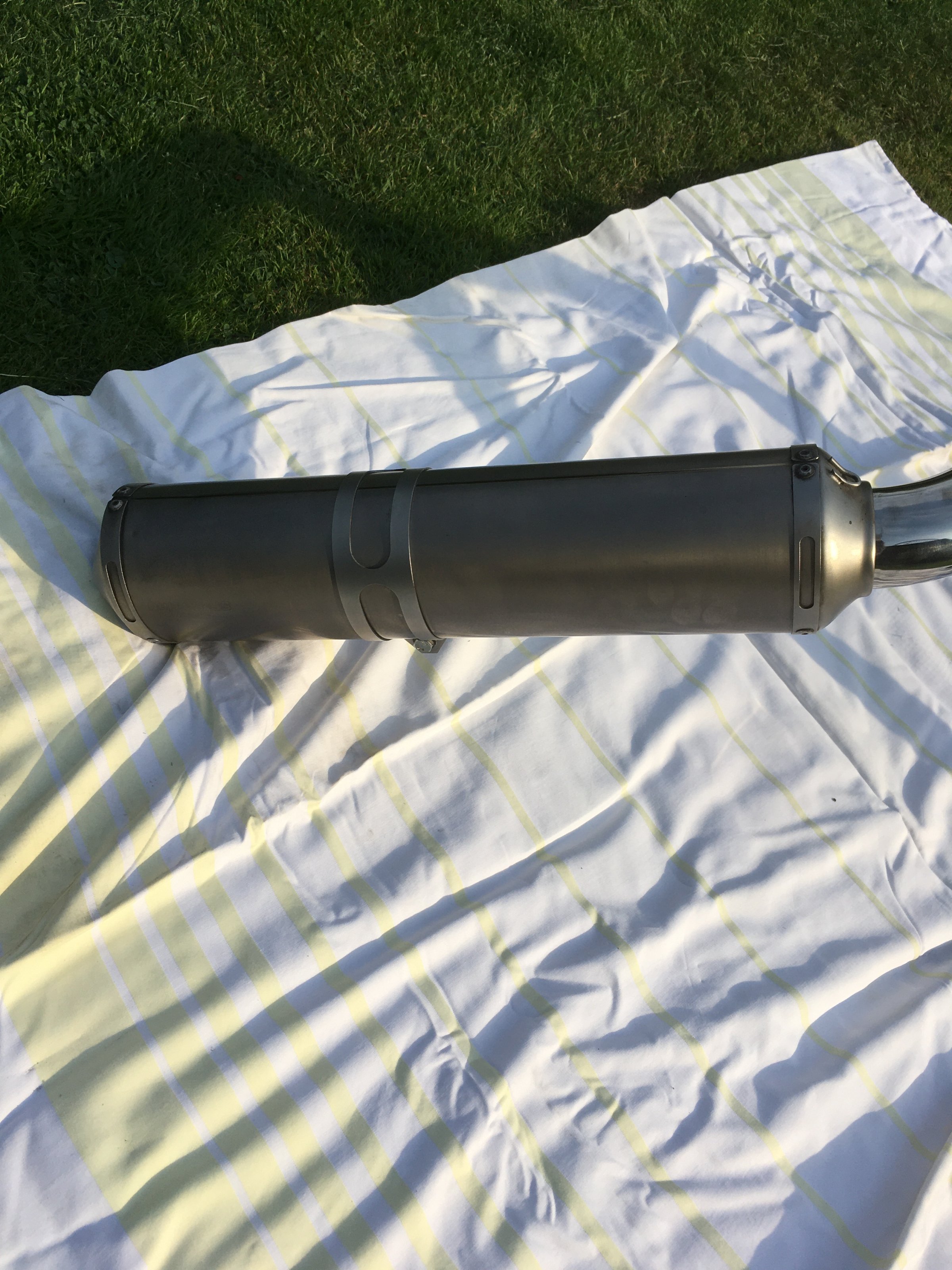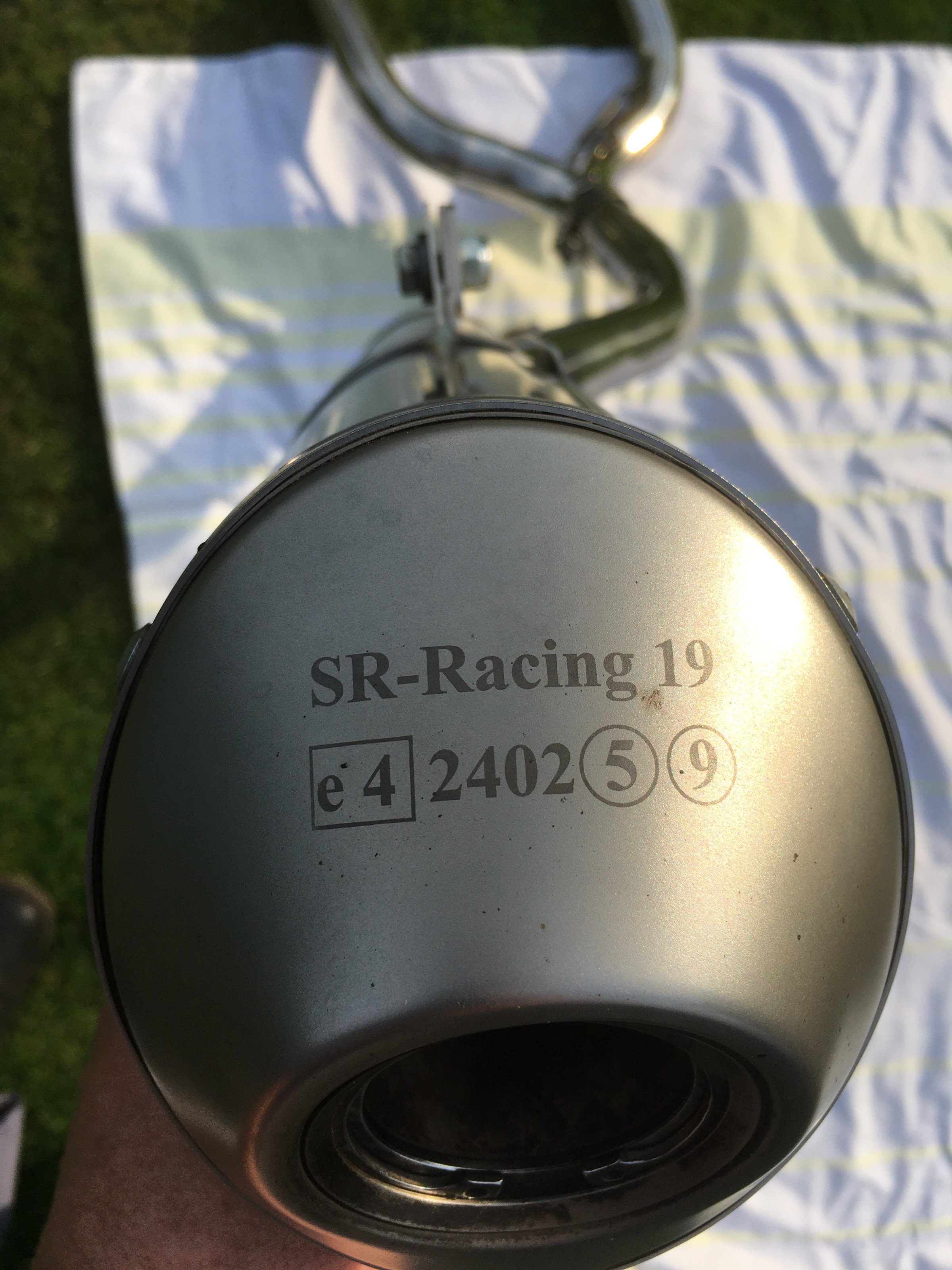 auch wieder eingeschränkt erreichbar). Der Schalldämpfer trägt E Kennzeichnung (siehe Foto) - also keine Eintragung nötig. Die Anlage befindet sich in einem sehr guten Zustand, siehe Fotos.