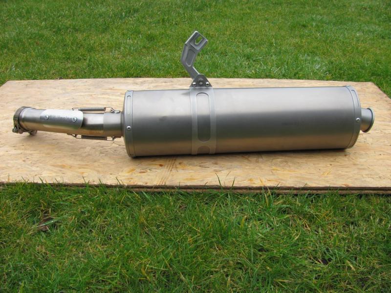 Wer den Service von SR kennt, weiss das man den Auspuff dort hin schicken kann. Dort wird er neu gebürstet und mit einem neuen Schriftzug versehen. Kostet ca 30€-dann ist er wirklich wie neu, ist aber meiner Meinung nach nicht nötig . Der Neupreis liegt bei 650€.