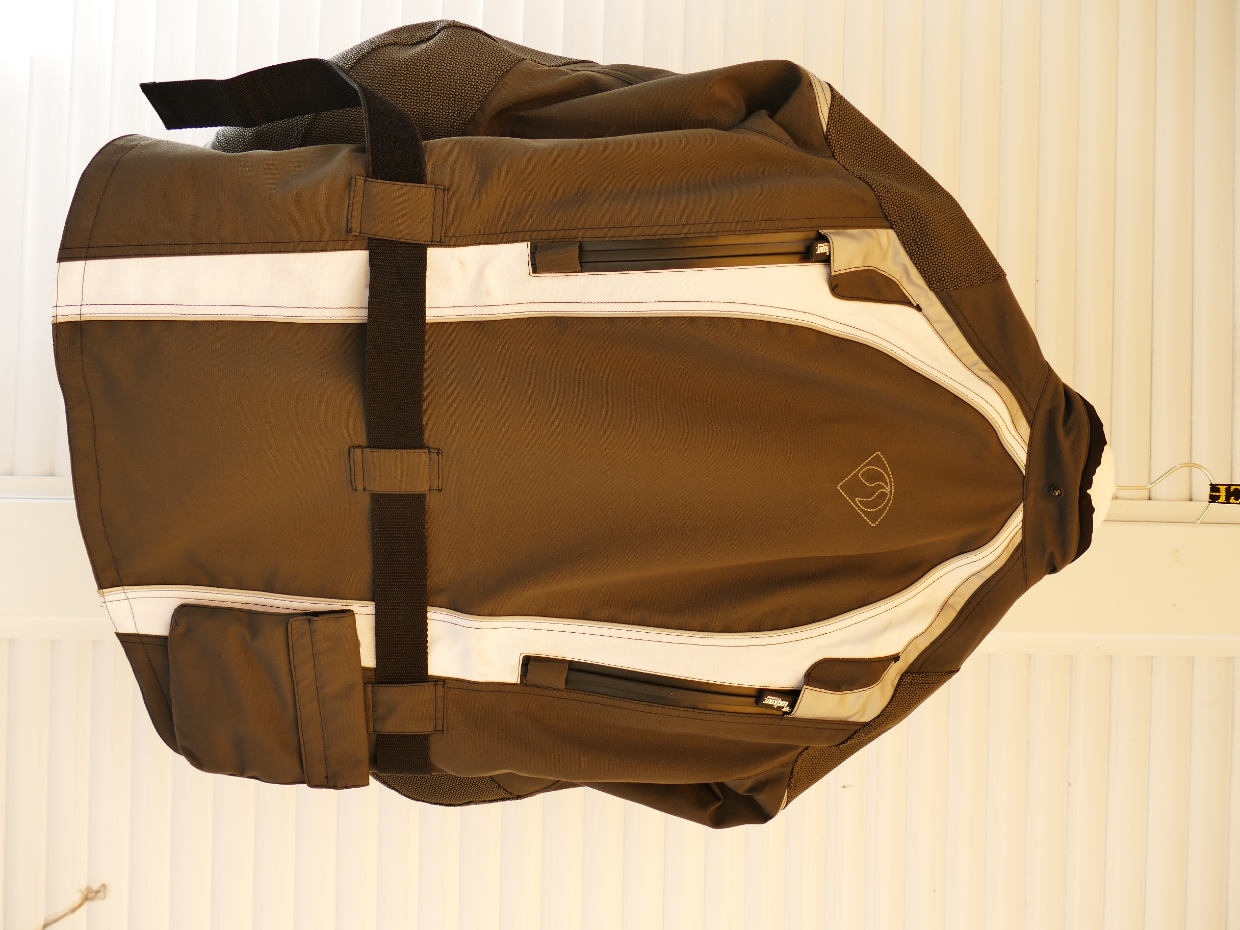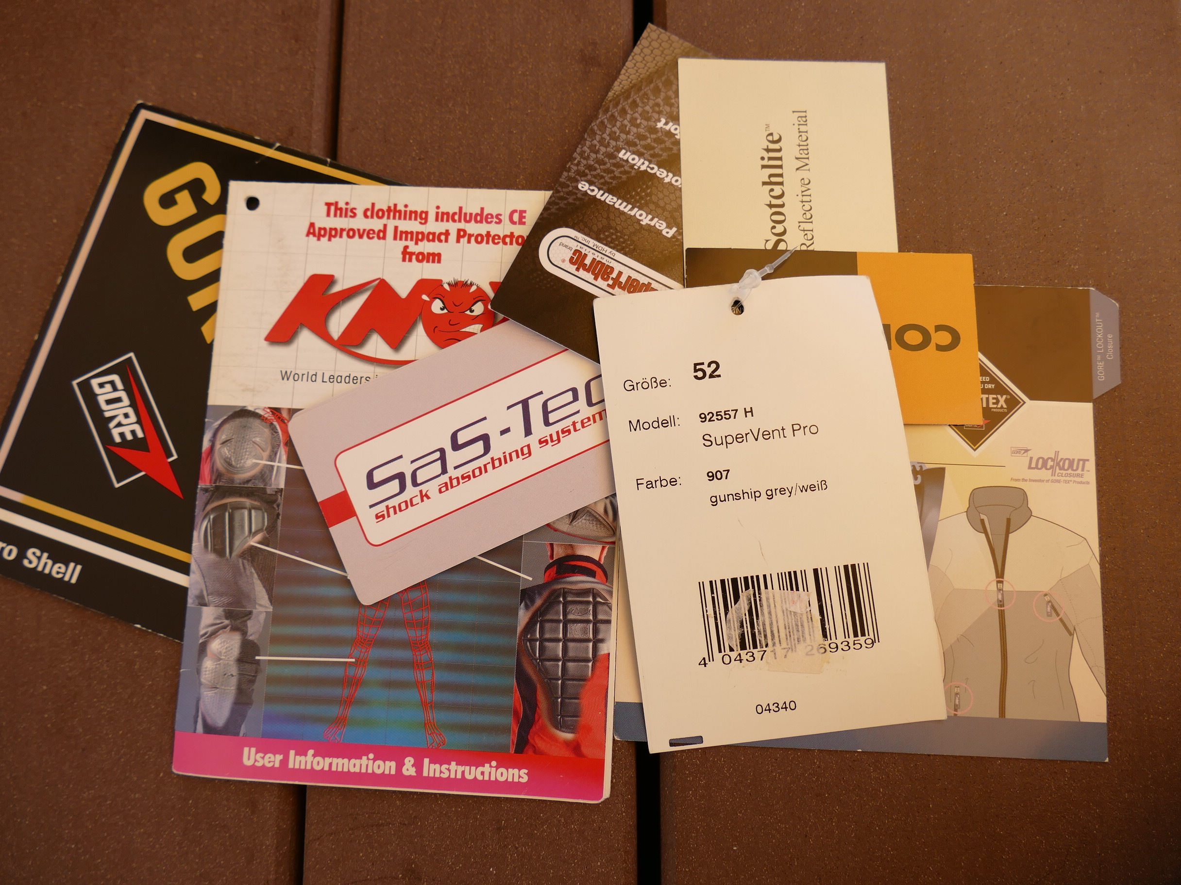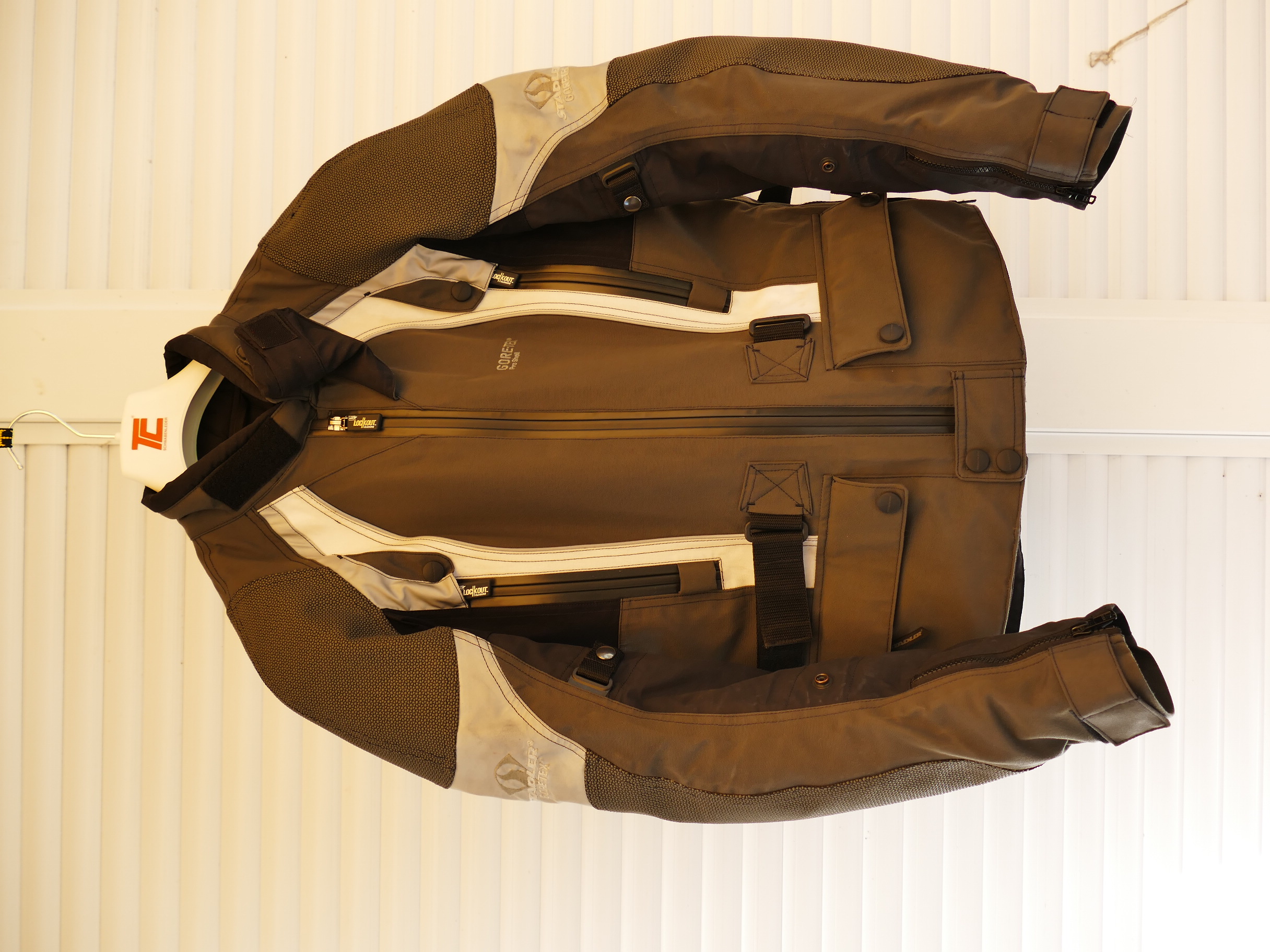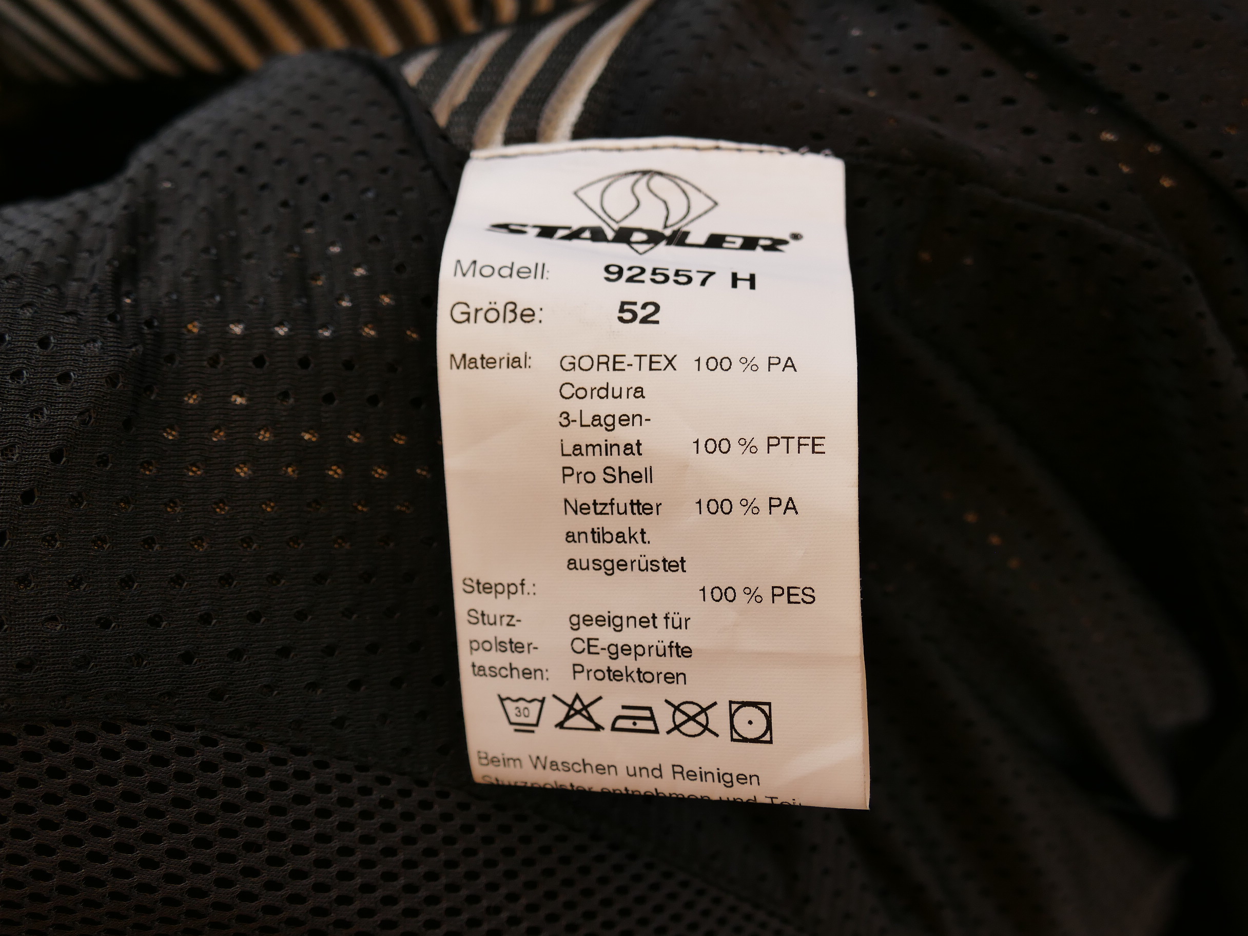 Zur Lieferung gehört eine Steppinnenjacke. Zahlreiche Lüftungsreißverschlüsse machen das Fahren in der Wärme erträglich. Knox – Protektoren schützen die Ellbogen, die Schultern und den Rücken.