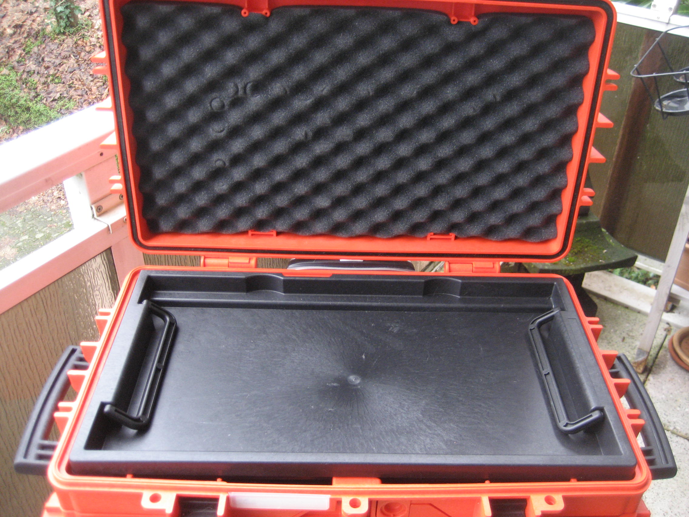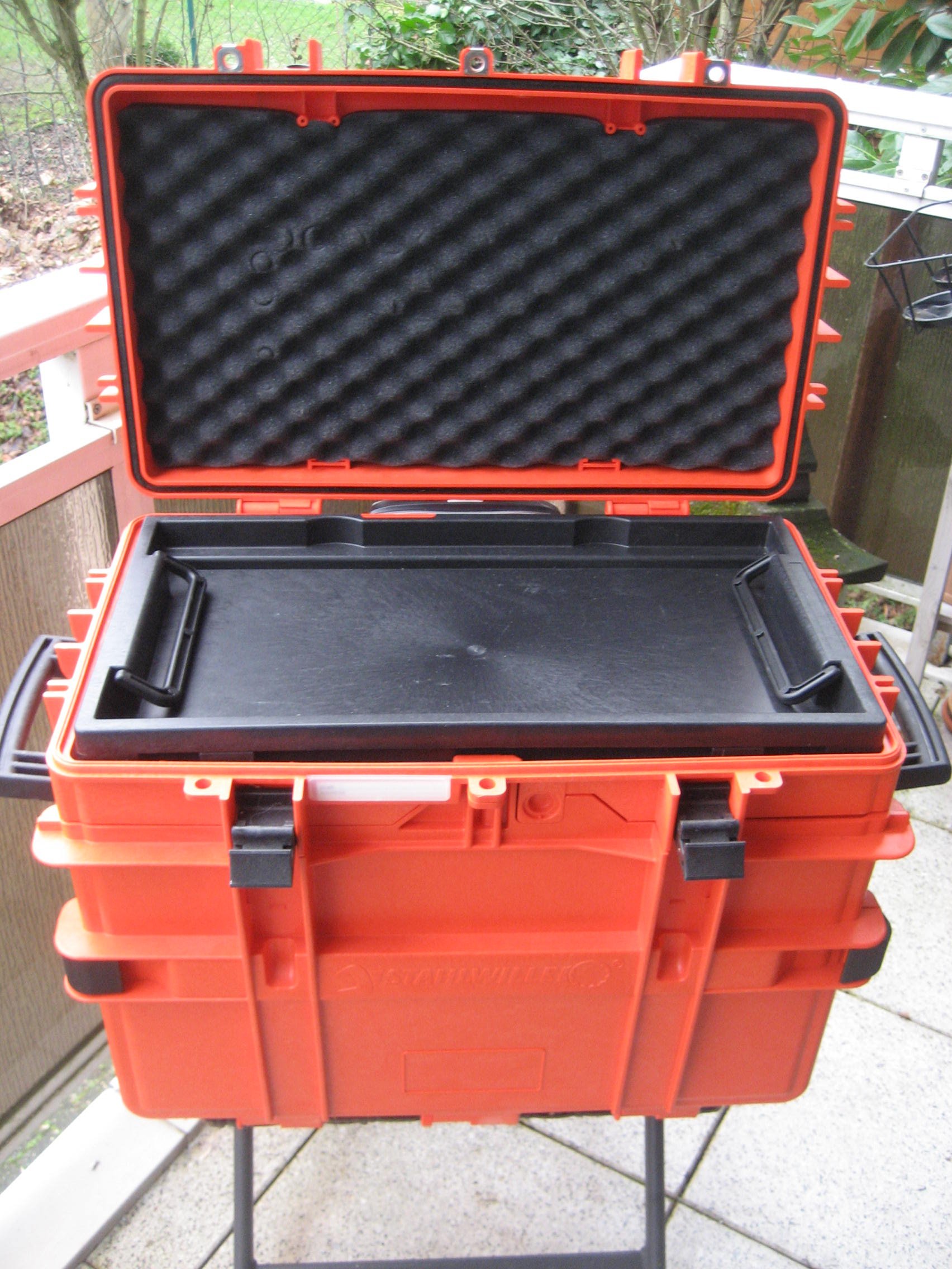 der obere Deckel ist zur sicheren Fixierung der Werkzeuge mit Noppenschaum ausgestattet.