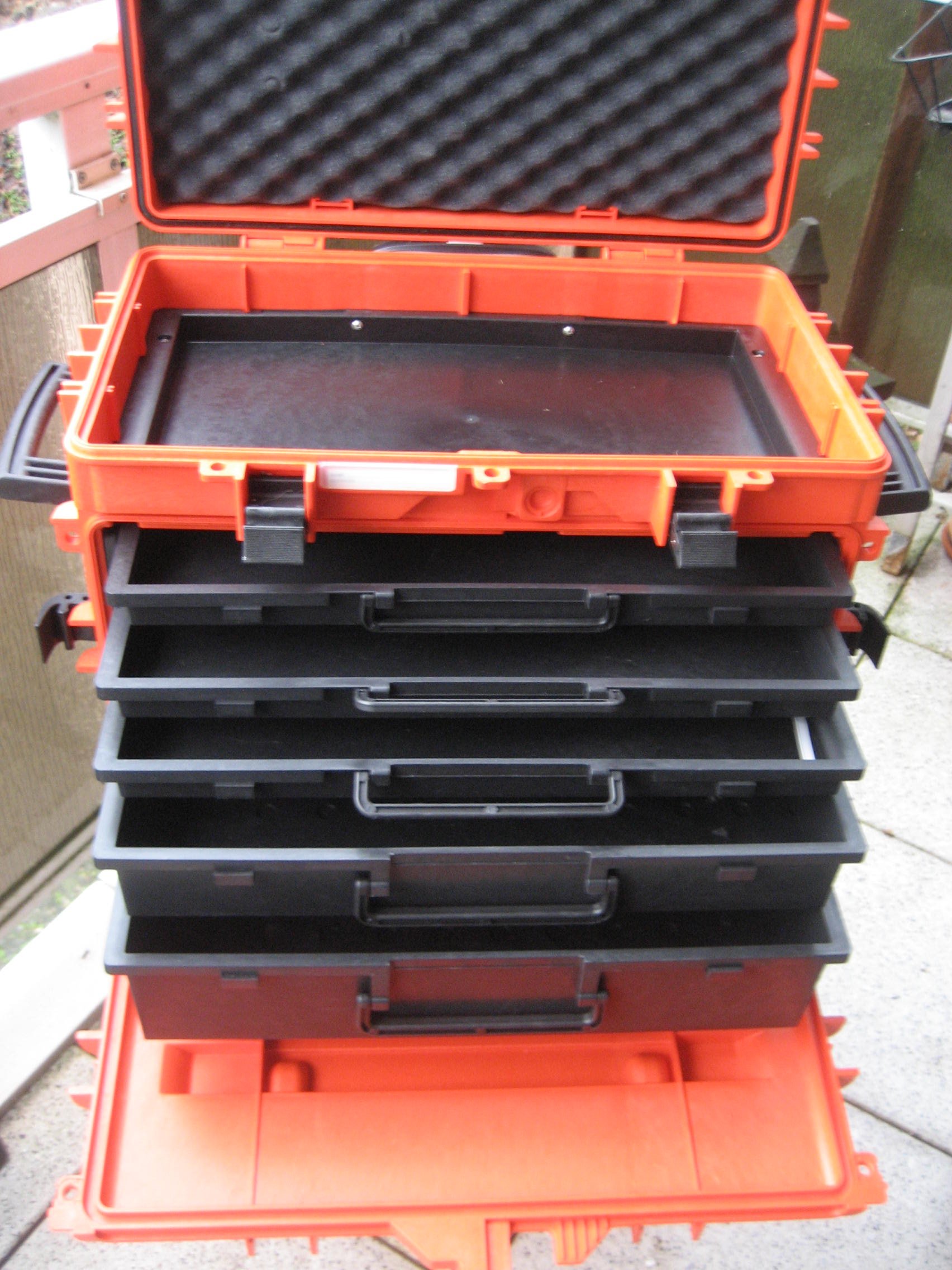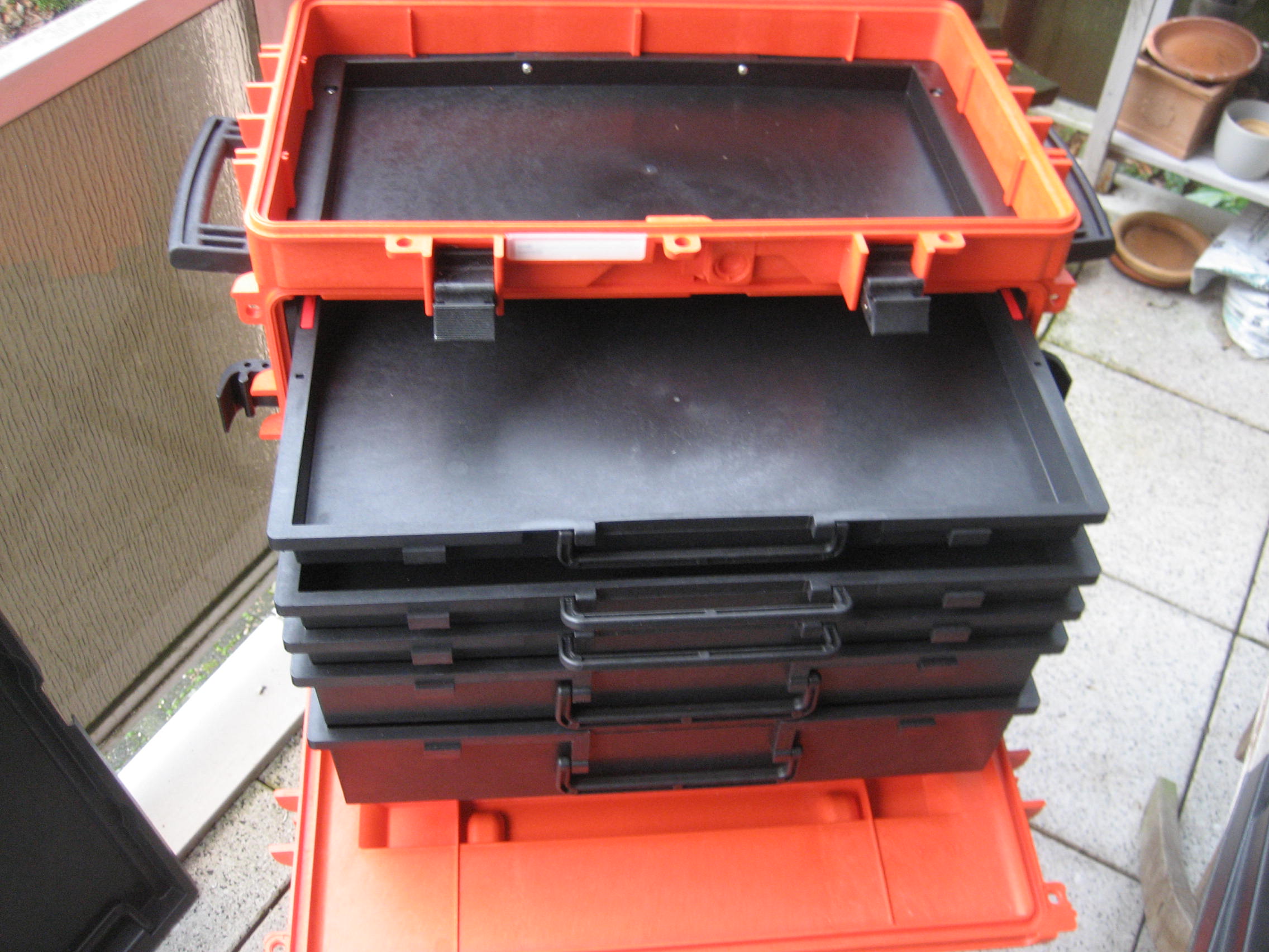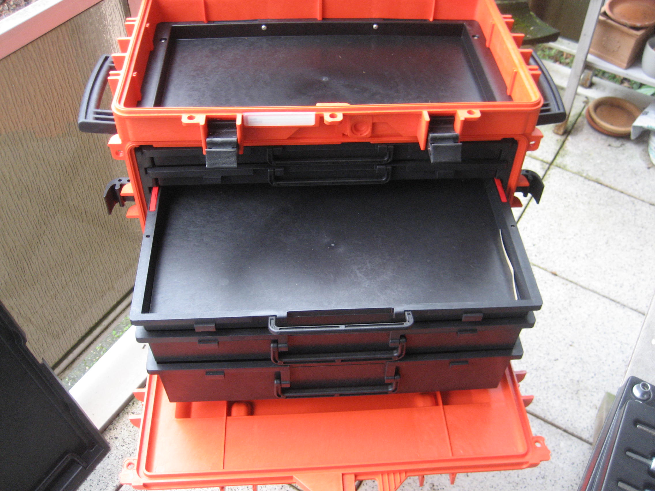 1 herausnehmbare Ablage mit 2 Griffen und 2 transparente Schubladendeckel unter dem oberen Deckel