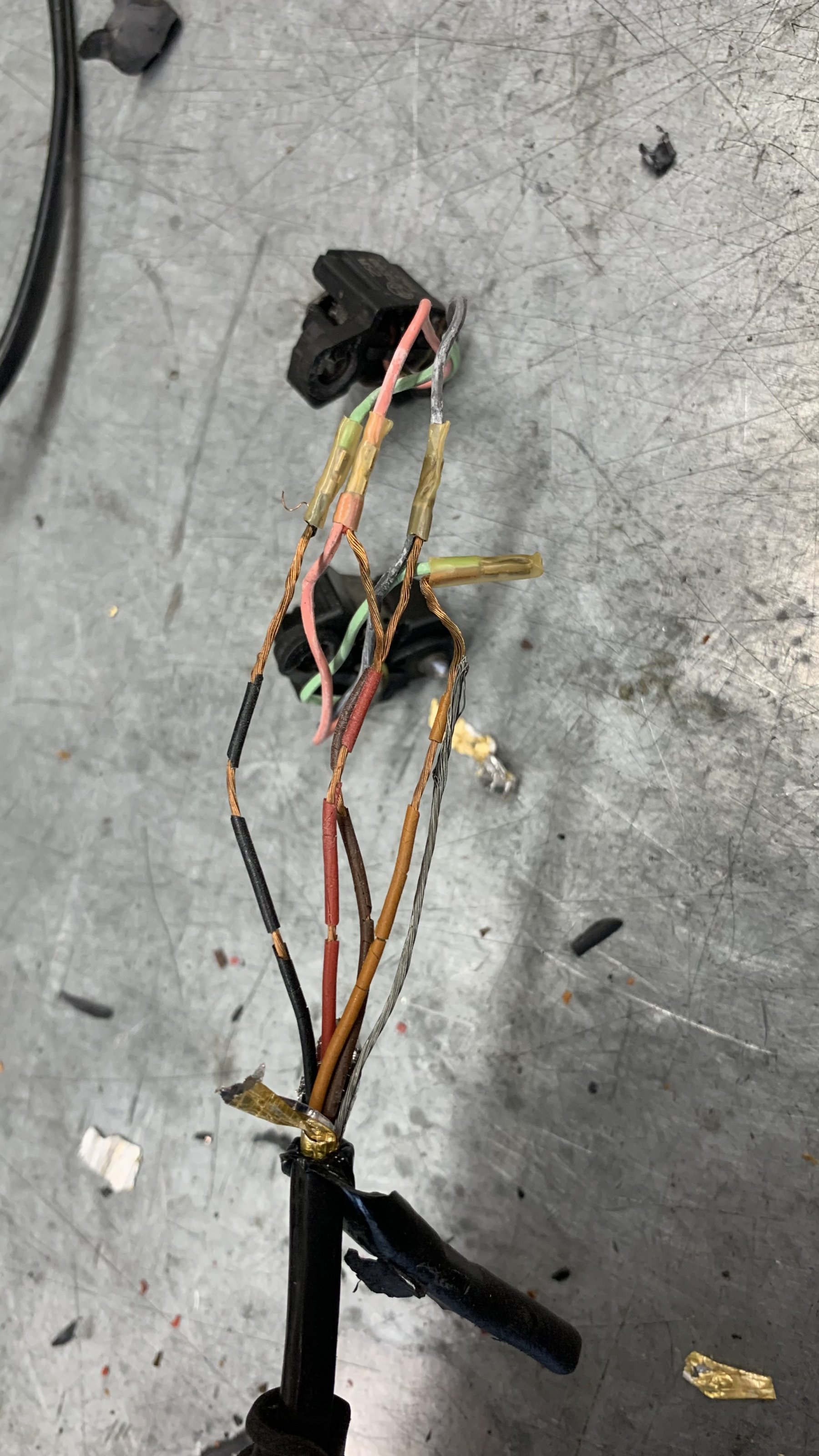 Die Kabel auf der Steckerseite sind vom anderen Geber. Aber selbst an dieser relativ kalten Stelle am Lenkkopf sind die Kabel hochgradig mürbe.
