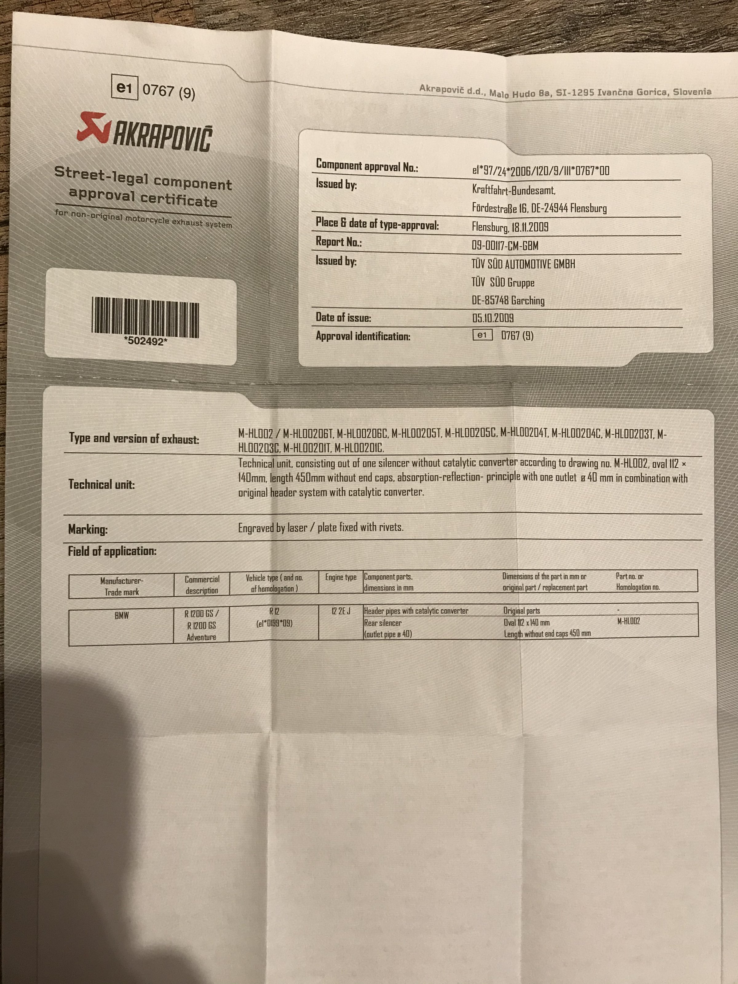 wegen den neuen Vorschriften in Tirol (Standgeräusch<95dB) habe ich mal in meine Fzpapiere geguckt. Ich habe eine 1200GS ADV TÜ Bj. 2011 mit eingetragenen 92dB Standgeräusch. 2 Jahre später habe ich den Orginal-BMW Akrapovic ESD (lasergraviert, mit BMW-Teilenummer) vom Freundlichen gekauft Und drangebaut. Da ist eine ABE dabei (s.Anhang). Eintragung somit nicht erforderlich. Dem TÜV war das Ding auch immer egal. Da steht nichts drin hinsichtlich Stand- und Fahrgeräuch. Frage: Gelten dann für den AKRA die im Fahrzeugschein eingetragenen Geräuschpegel der Serienendschalldämpfers oder nicht?