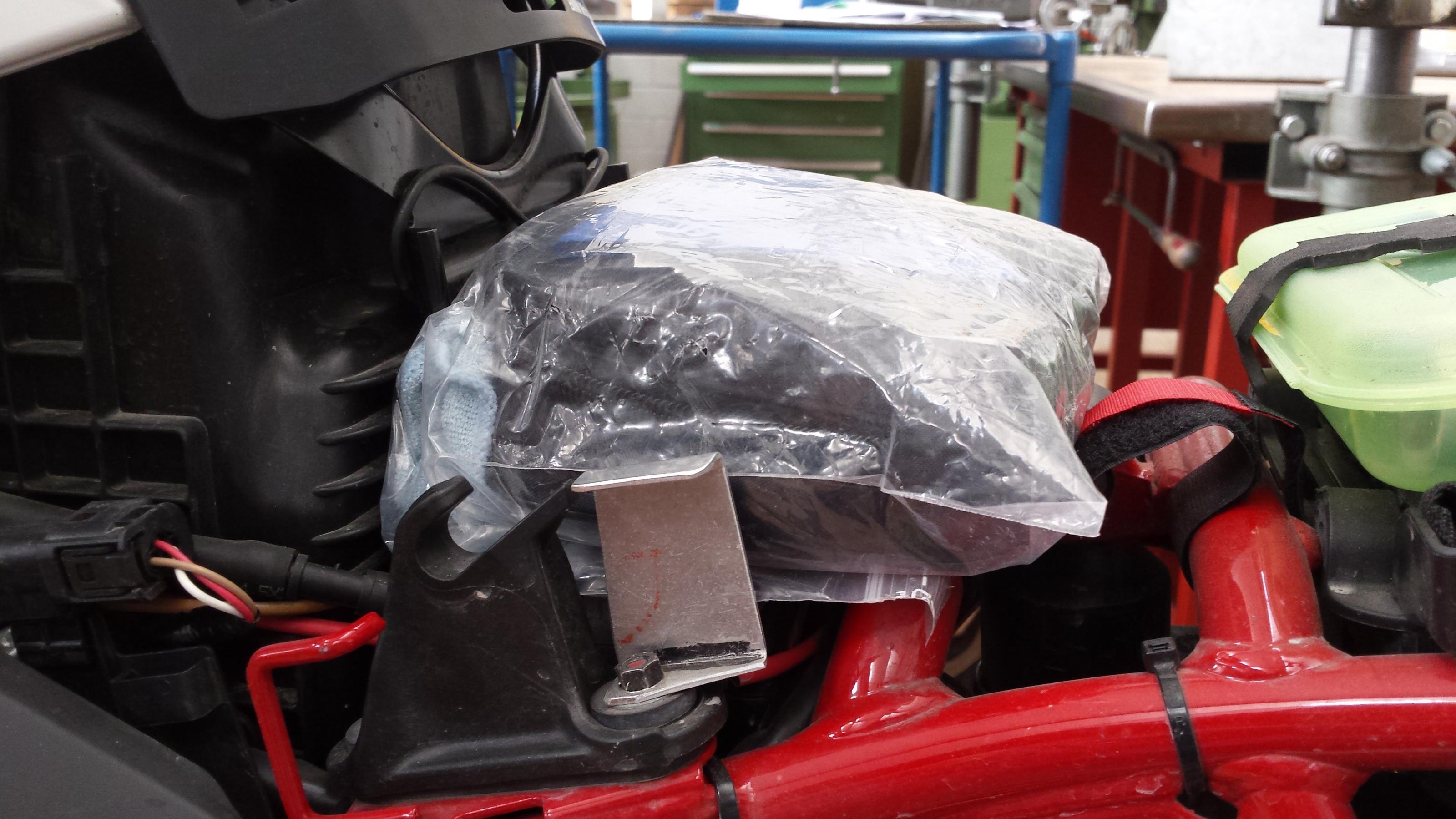 unter dem Sitz ist ja noch etwas freier Raum im Bereich über der Batterie. Leider ist dort die Stange für die Sitzhöhenverstellung im Weg.