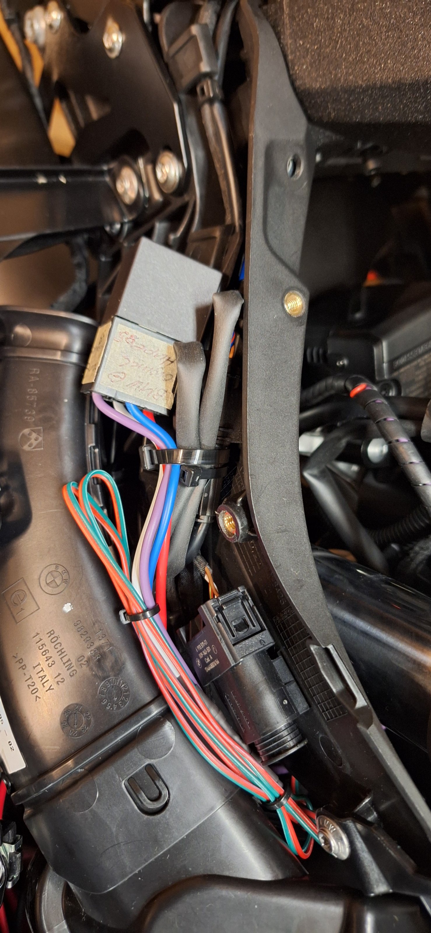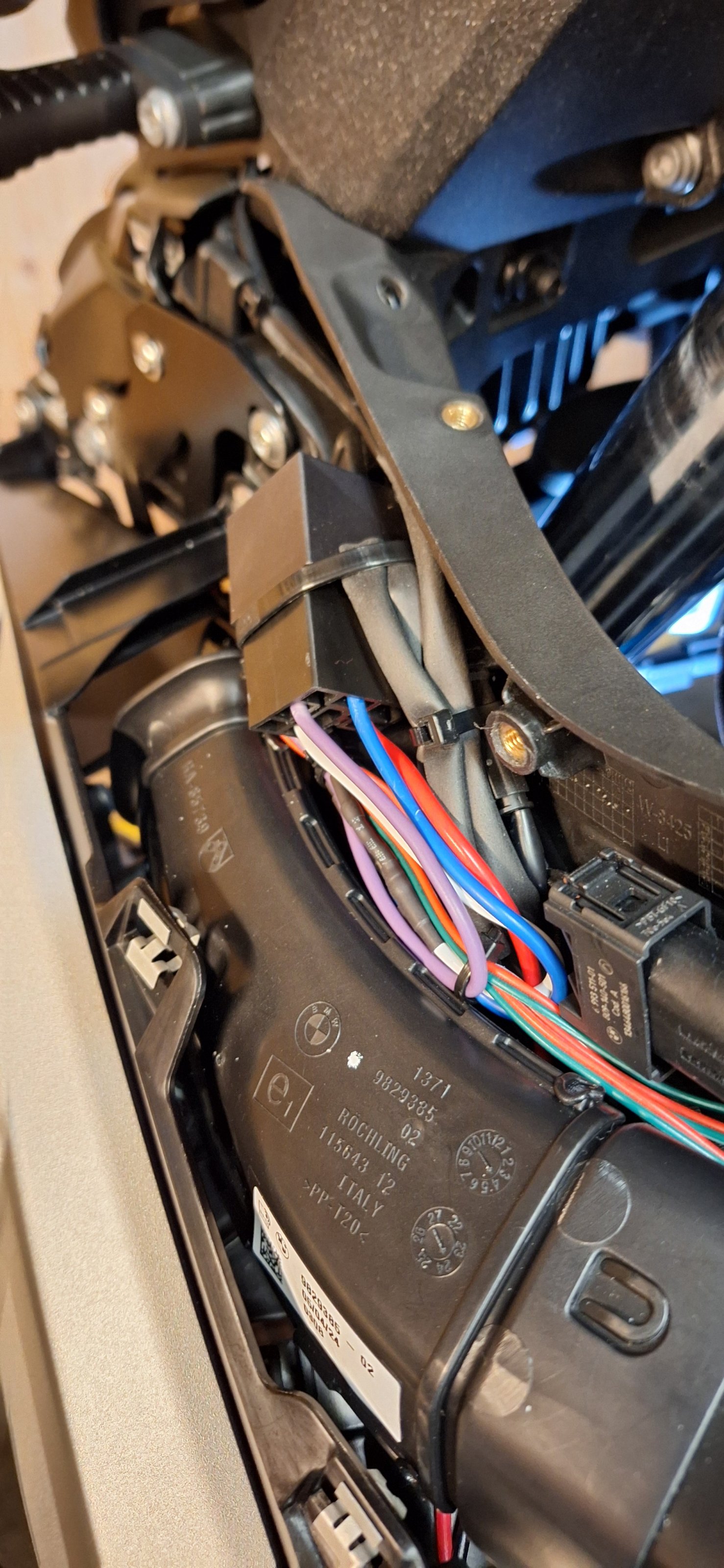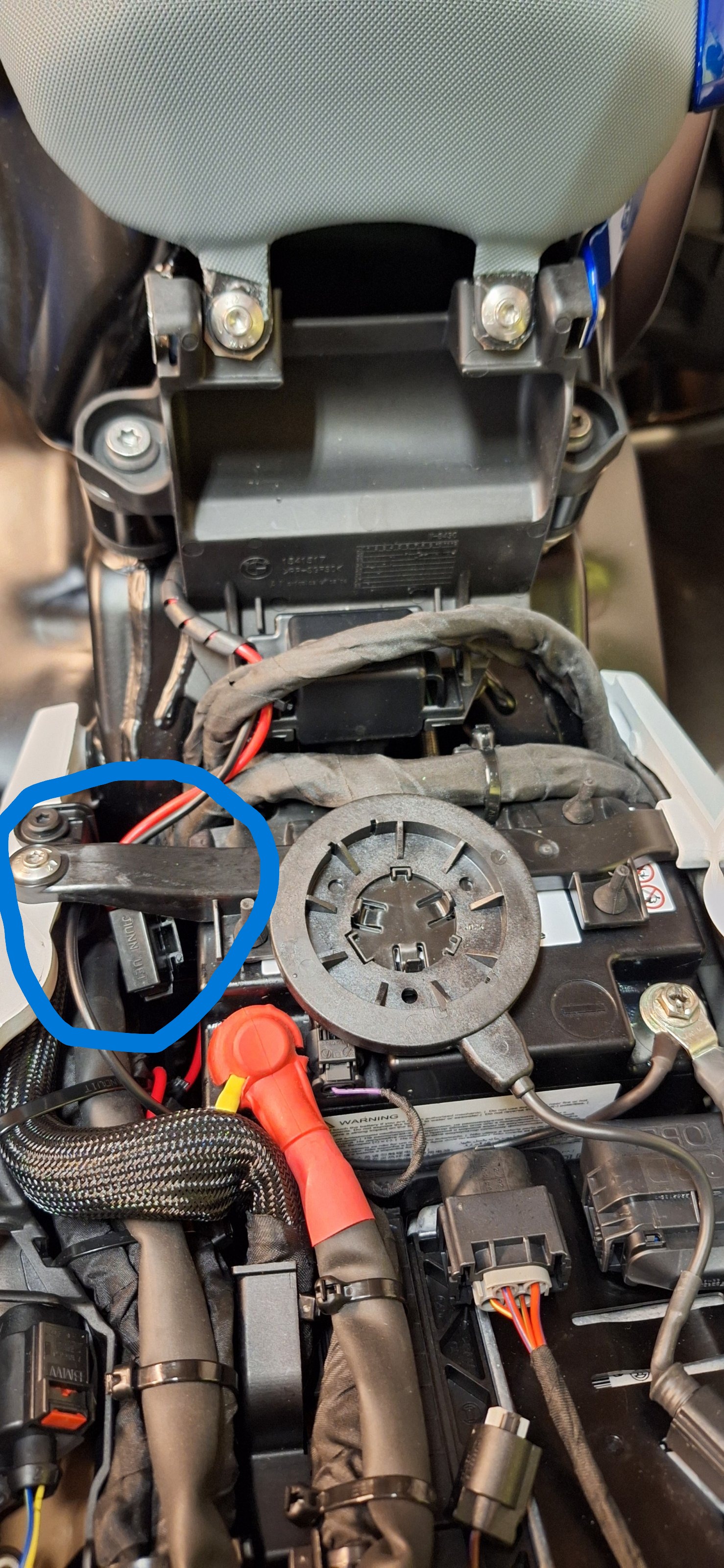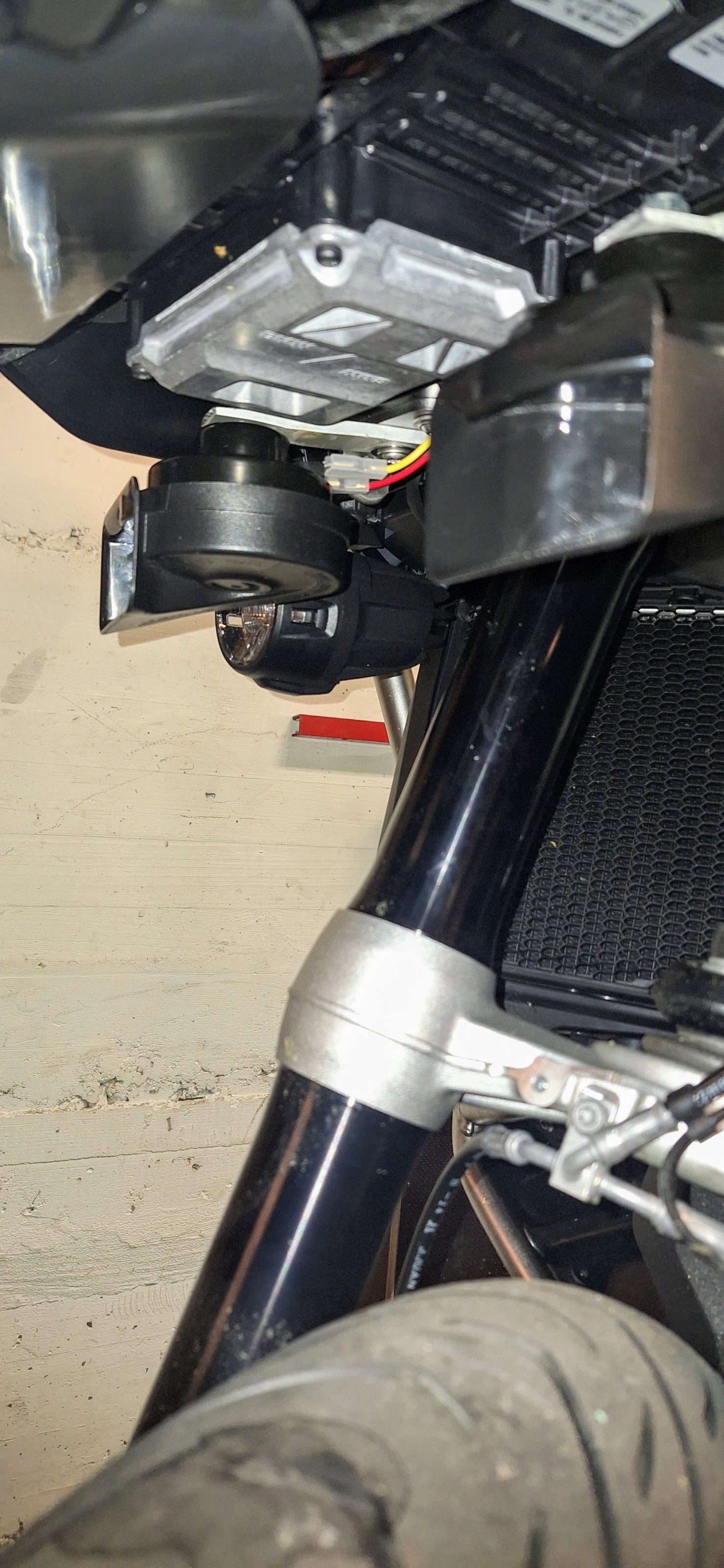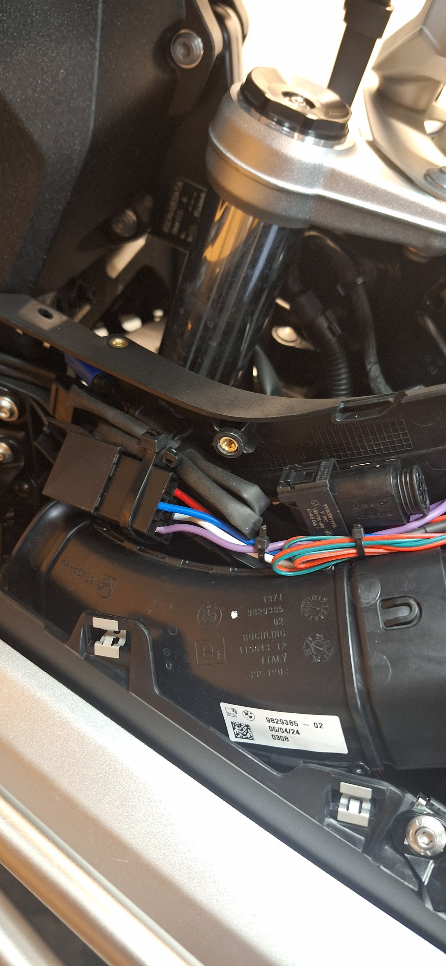 Einen eigenen Kabelbaum mit den passenden Steckern gebaut und rechts am tank unter der Verkleidung nach unten bis zu dem schwarzen Plastikdecke verlegt. Dort wurde dann auch das Relais verbaut ... fertig ... ich muss gestehen, dass ich nur der Praktikant bei dre ganzen Sache war, mein Spezi ist Elektroingenieur und fährt selber eine 1250GSA ... hatte im Freundeskreis bereits mehrfach die Teile verbaut und er hatte somit eine gewisse Routine beim Einbau ...