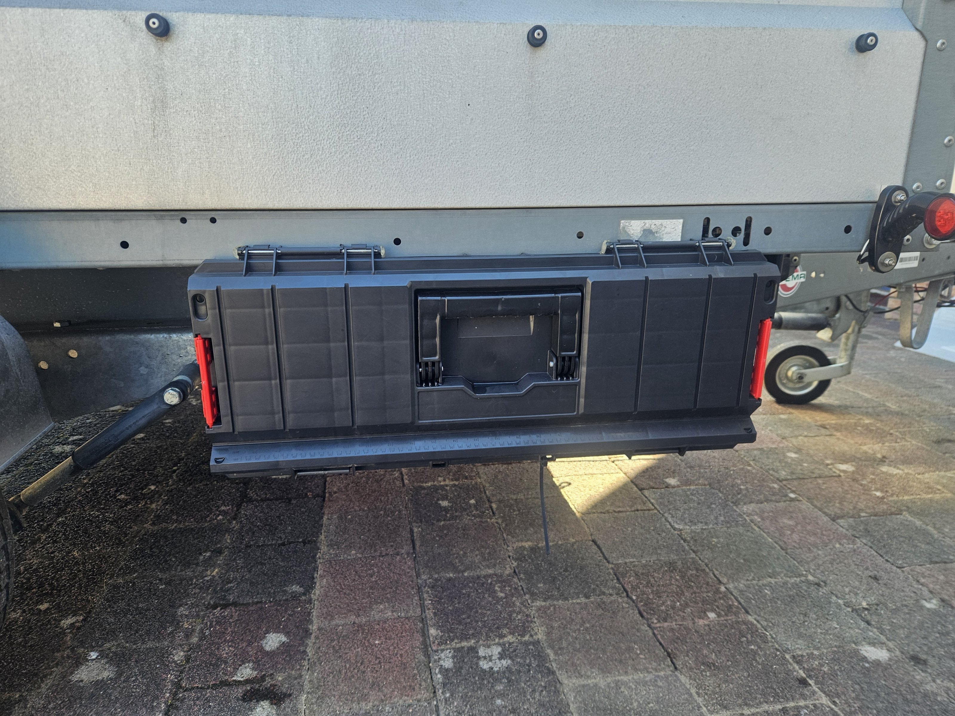 Dank der 8 Verzurrösen (2 Hinten, 2 in der Mitte 4 Vorne), kann man auch zwei Motorräder gut abspannen. Da die Verzurrösen versenkt sind stören diese auch nicht beim Transport von Schüttgut und verdrecken auch nicht.
