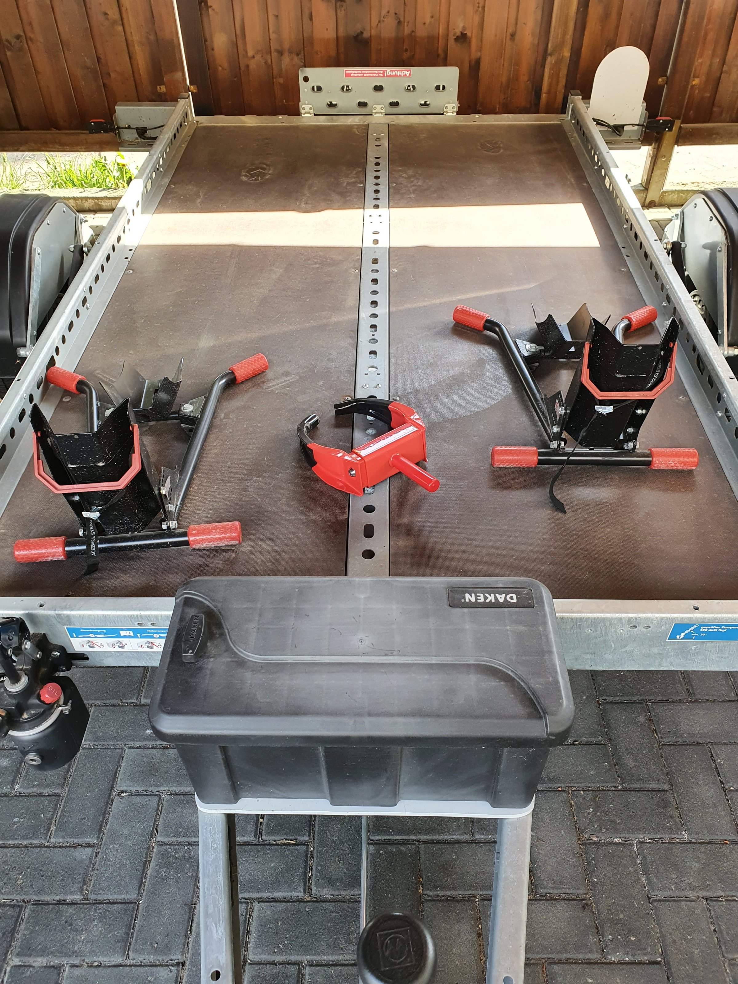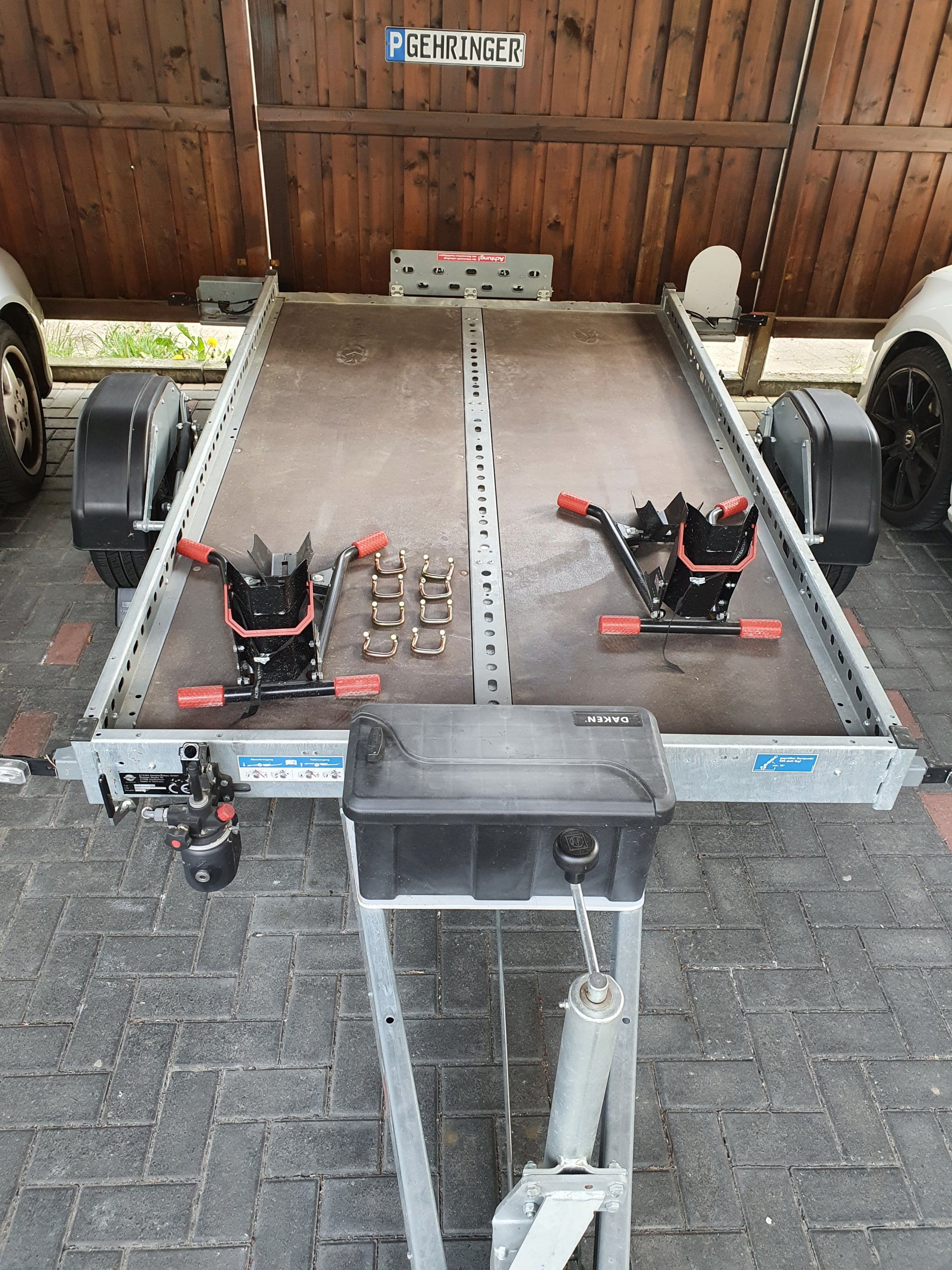 Der Anhänger hat Platz für 2 große Motorräder.