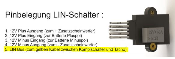 (Genauer: Den Strom, der ein Relais schaltetet, das wiederum die eigentliche Stromversorgung für die Zusatzlampen freigibt)
