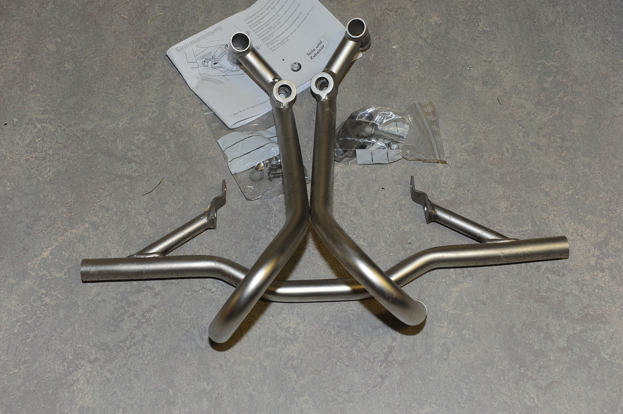 Es sind alle Schrauben und Winkel dabei. Der Sturzbügel war ca. 2 Jahre, max. 12000KM auf dem Motorrad.