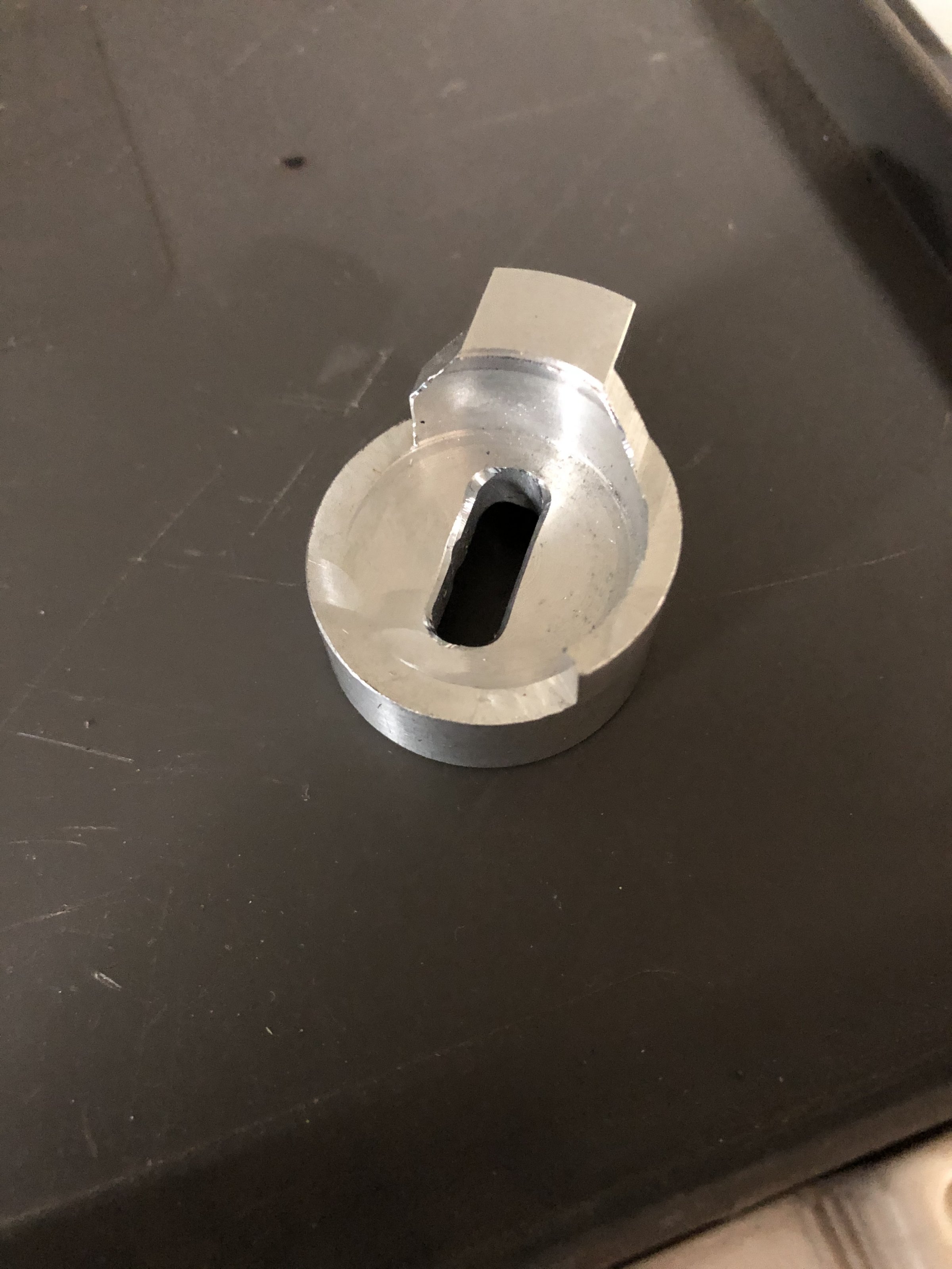Und zwar wenn man die Schloßleiste (drei Schrauben) heraus schraubt, sieht man von unten auf dem Schließzylinder ein gelbes Teil stecken.