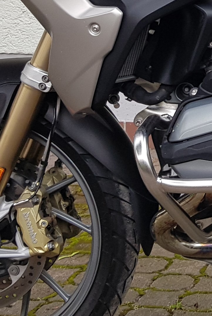Vorne hab ich ne dezente Kotflügelverlänegrung gewählt. Lässt sich super mit Uho Por verkleben und hält bombig ohne unschöne Schrauben oder Nieten