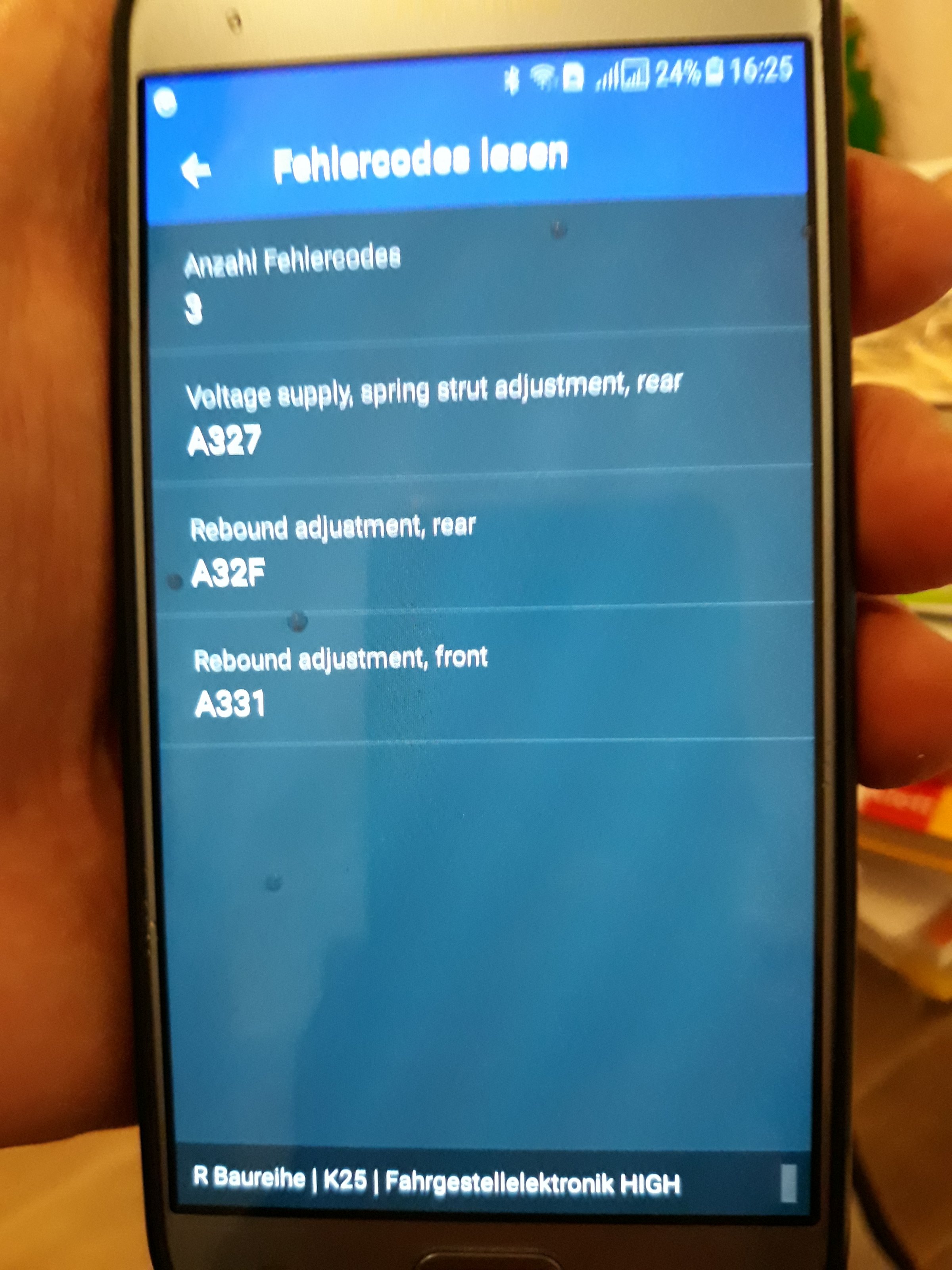 Beim Fehlerauslesen stellte ich zwei Meldungen das Fahrwerk betreffend fest (traten auch nach dem Löschen wieder auf):