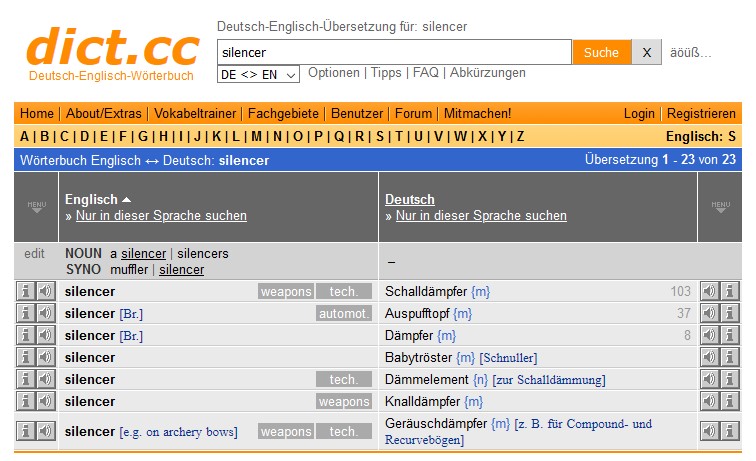 Silencer heißt leider rein gar nicht Endschalldämpfer, sondern sinngemäß "Stille", also "mach es leiser".
